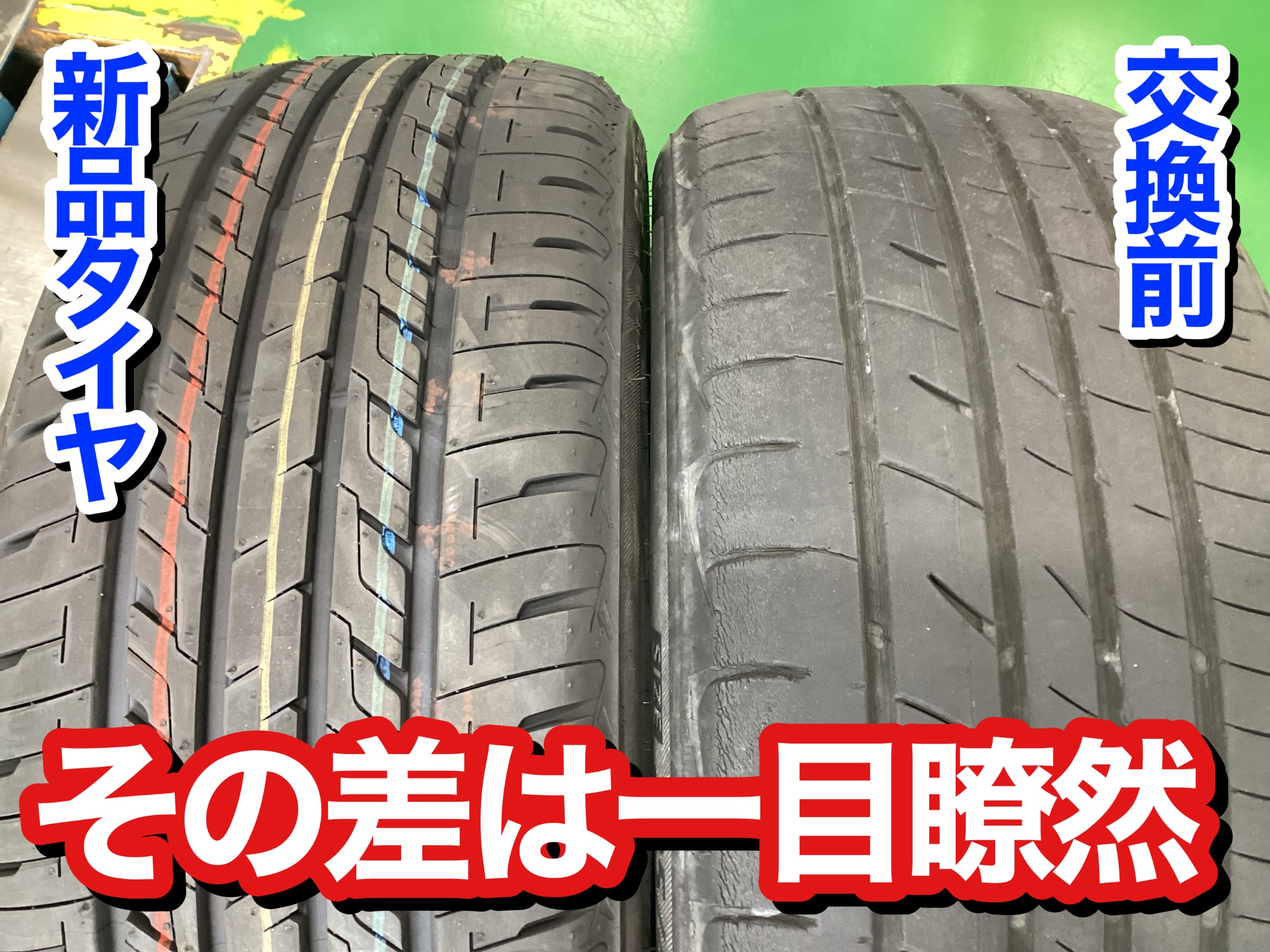 交換前のタイヤとこれから取り付けるタイヤを比べてみました‼︎