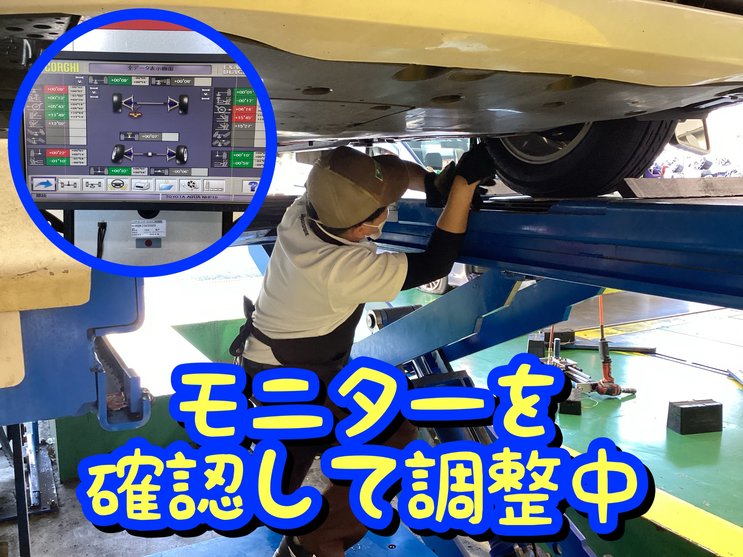 タイヤの性能をしっかりと発揮できるよう、アライメント調整も行います♪♪