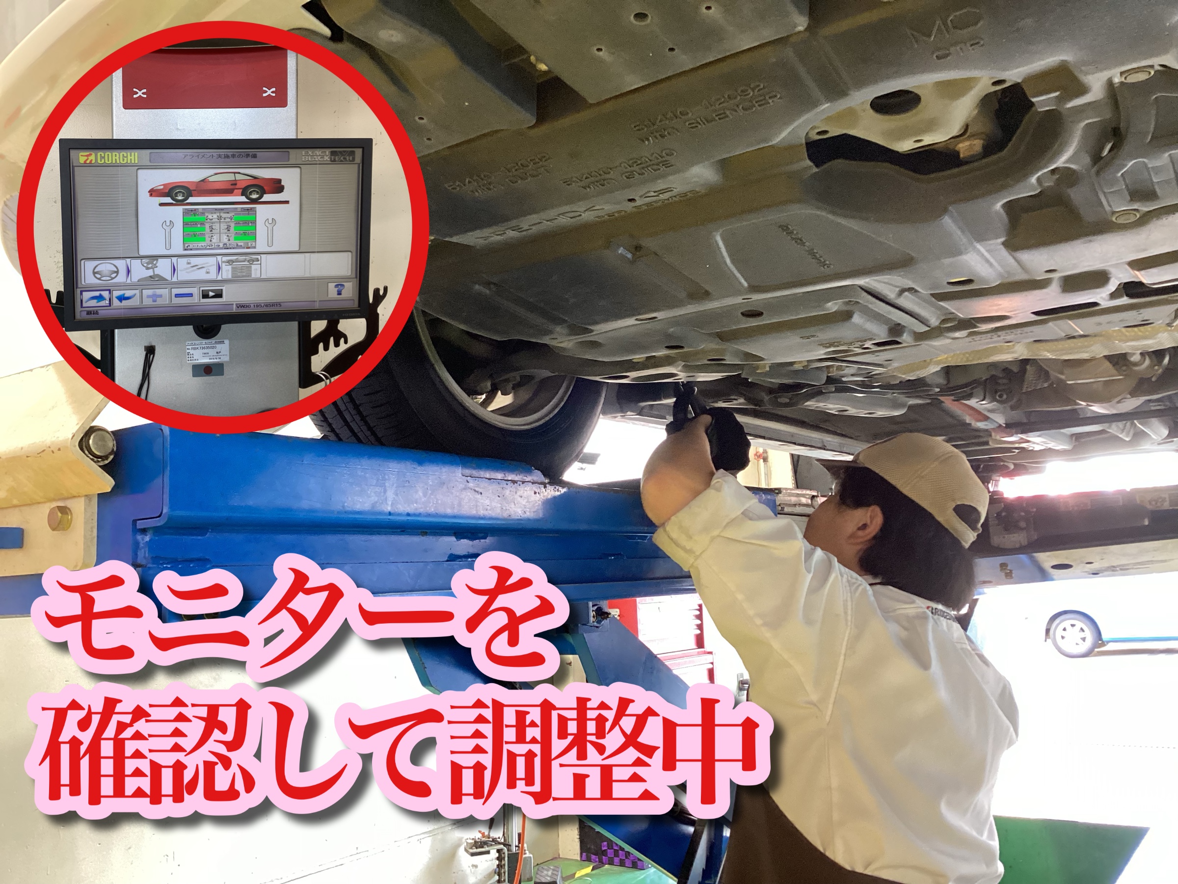タイヤの性能をしっかりと発揮できるようにアライメントの測定と調整も行います。