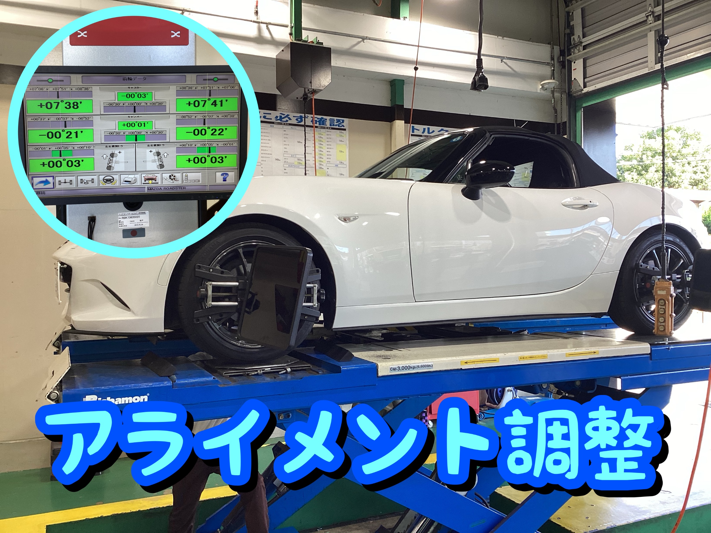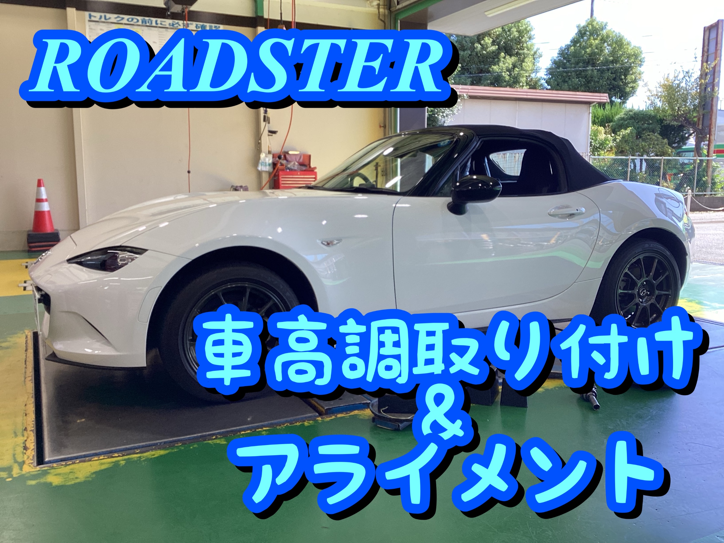 今回はROADSTERの車高調のお取り付けとアライメント調整のご紹介です♬