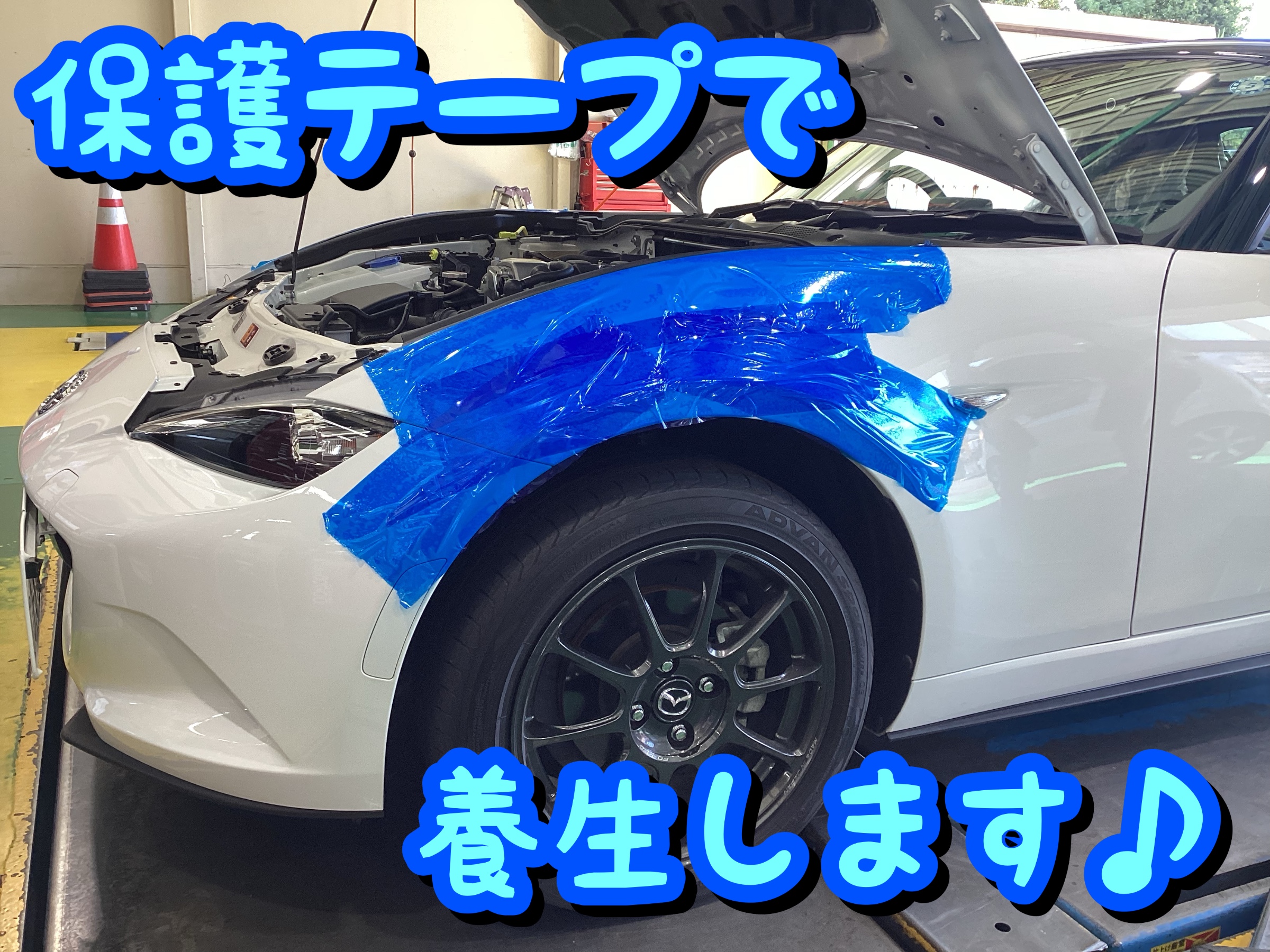 作業の前にしっかりと養生します。