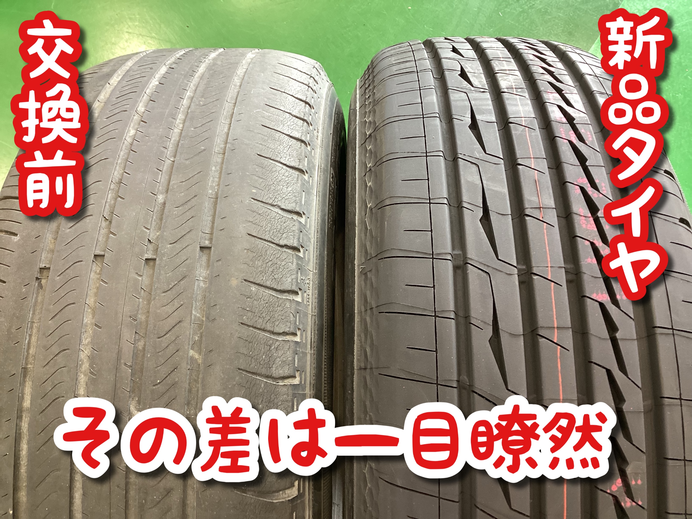 新品タイヤと比べるとその差は一目瞭然ですね。