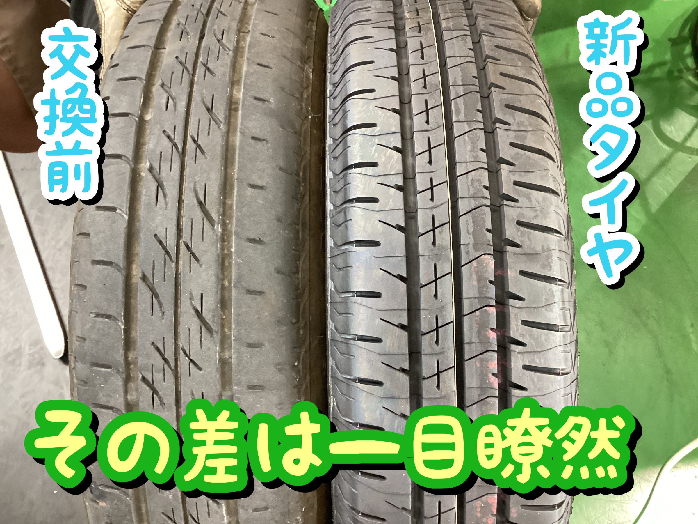 新品タイヤと比べるとその差は一目瞭然ですね。