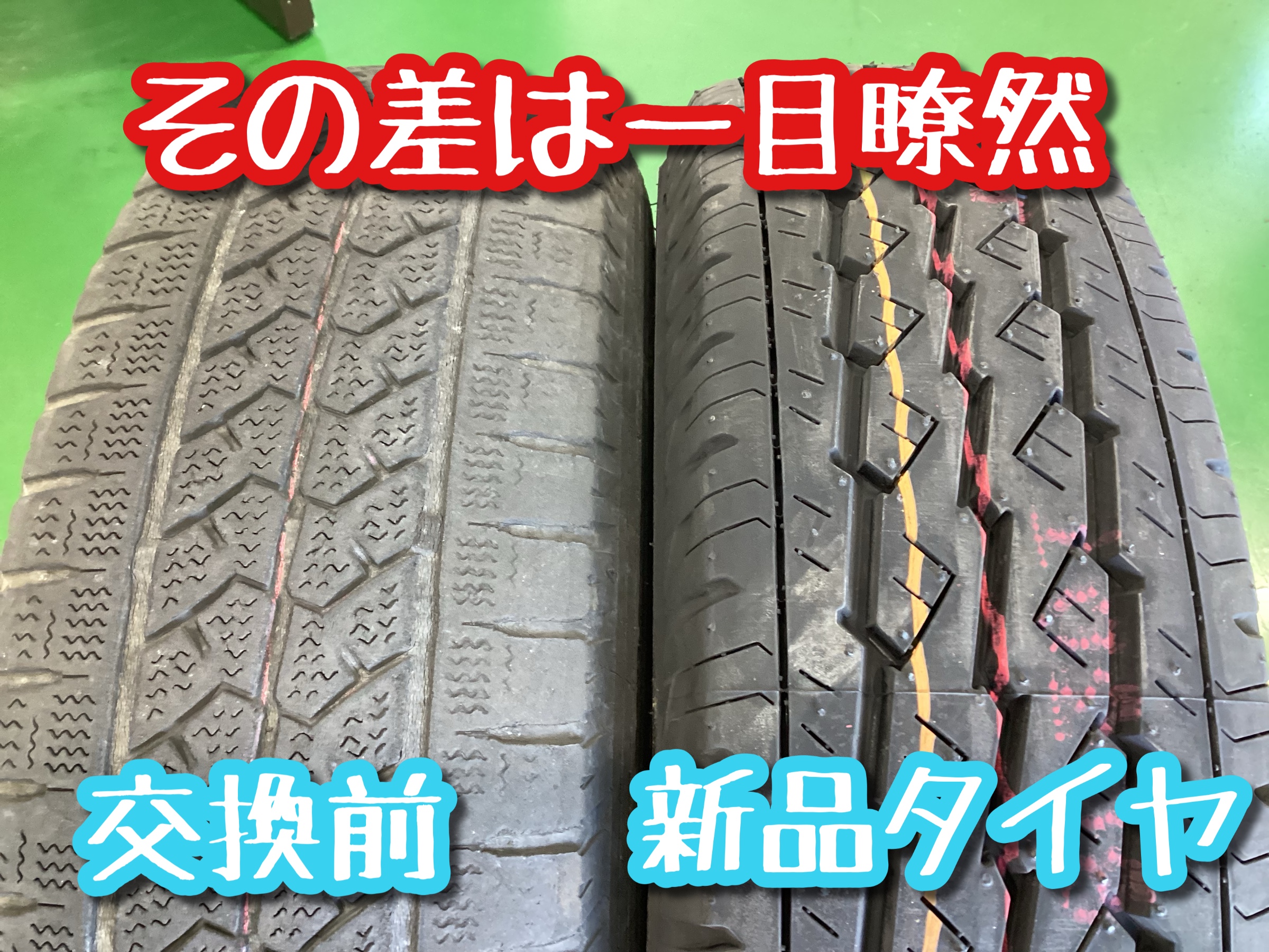 新品タイヤと比べるとその差は一目瞭然ですね!