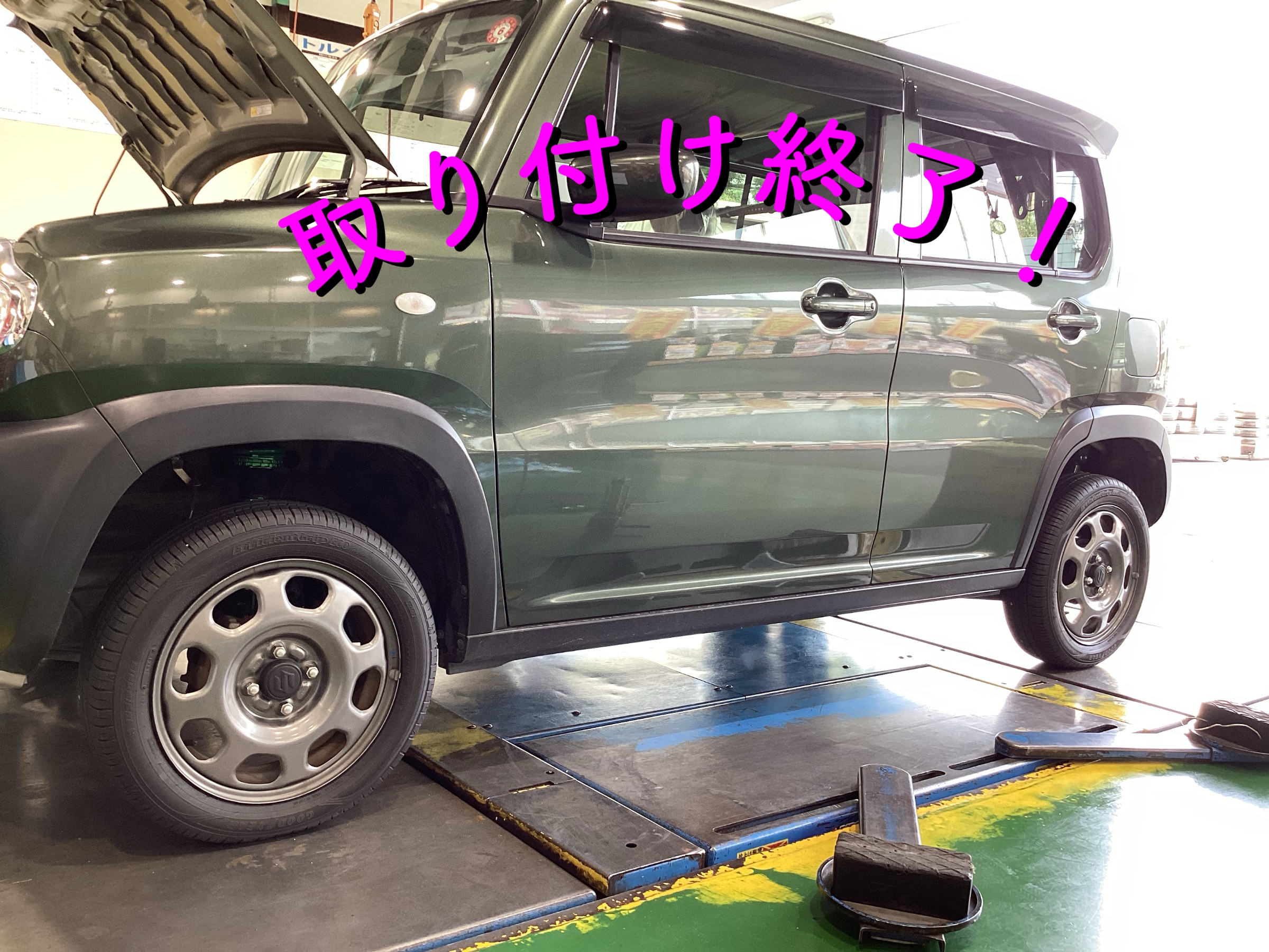 今回はハスラーの車高調のお取り付けとアライメント調整のご紹介です♬