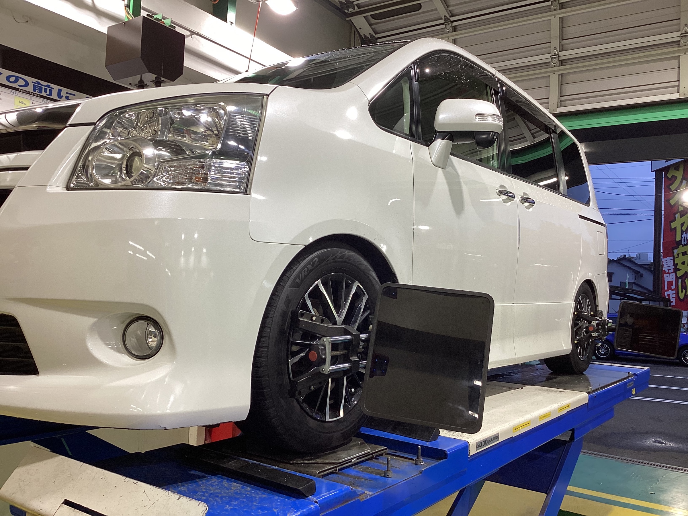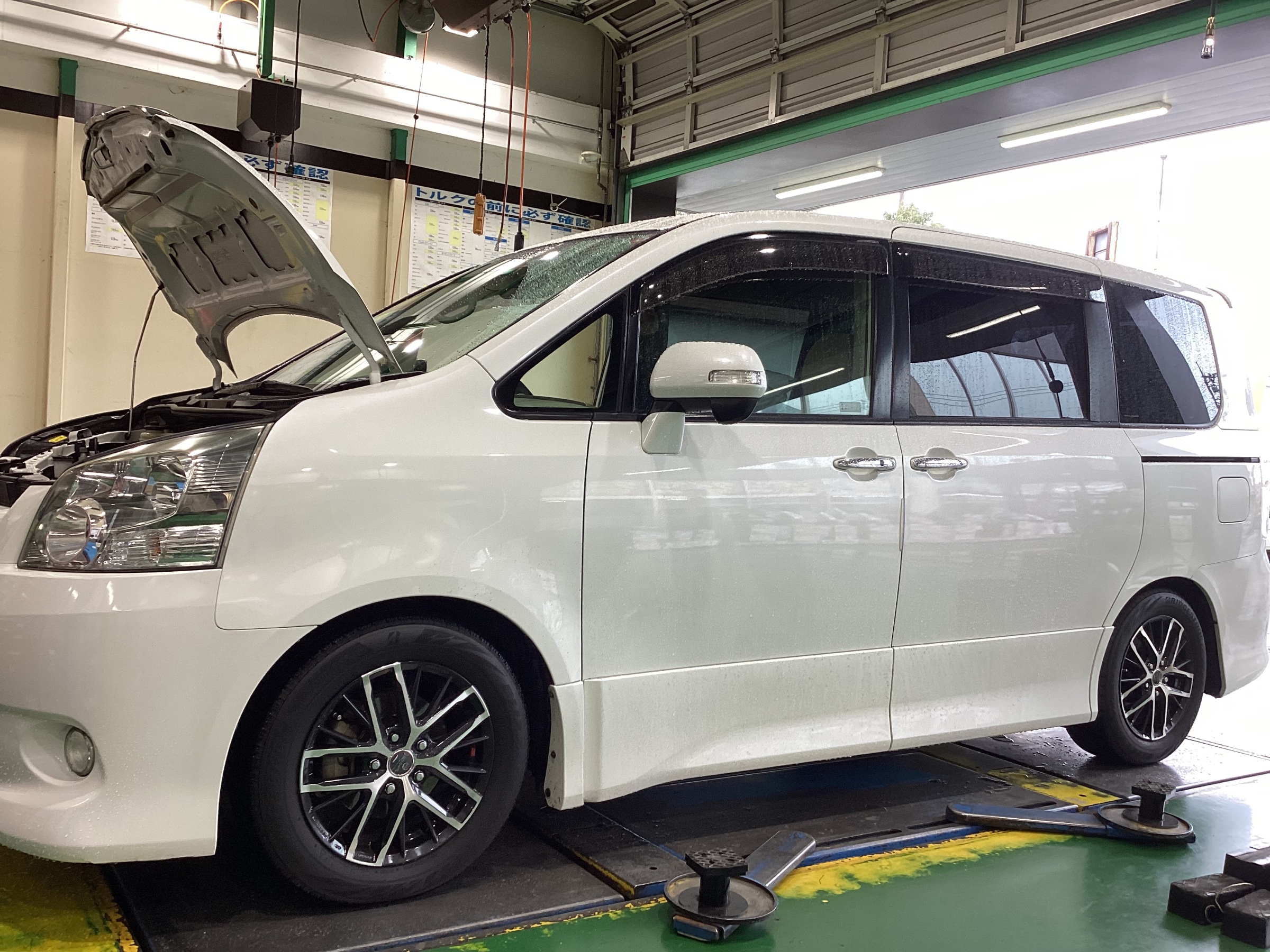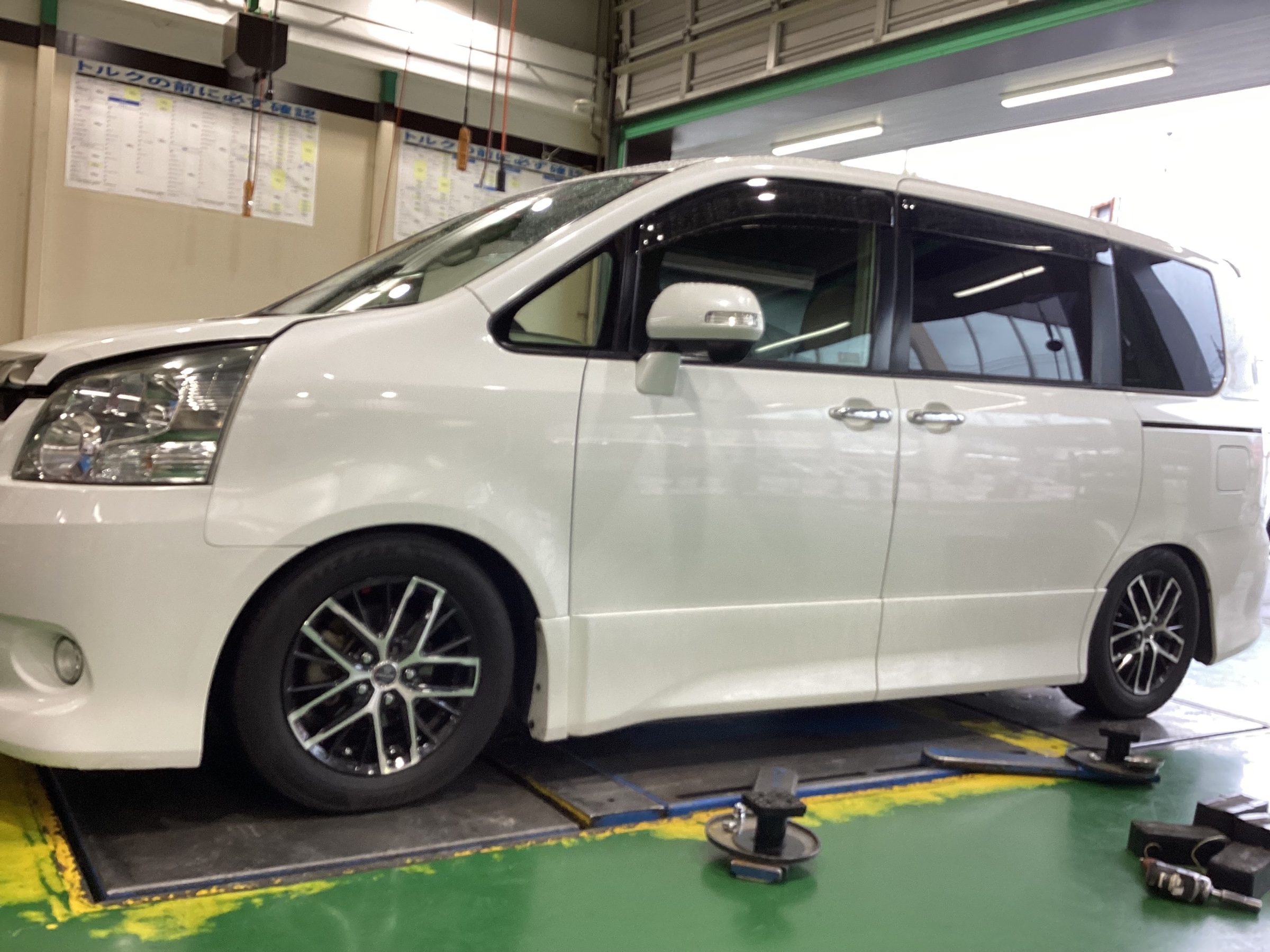 今回はトヨタ ノアに車高調のお取り付けとアライメント調整のご紹介です♬