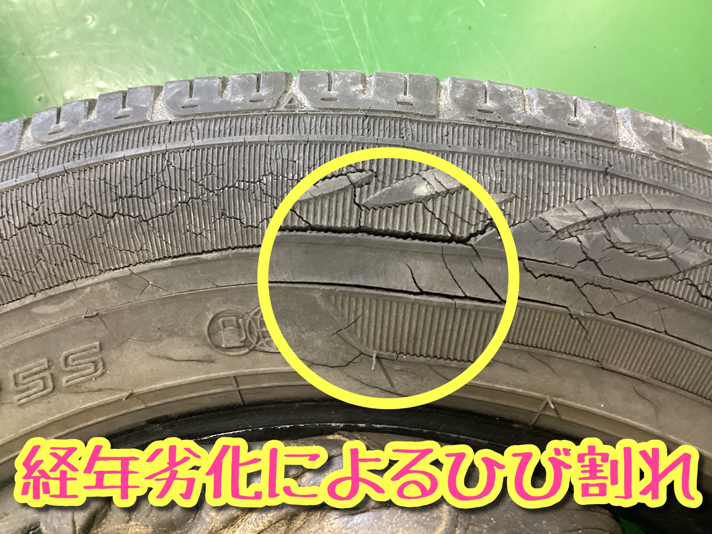 使用中のタイヤが劣化してきたので、安全のために交換させて頂きました。