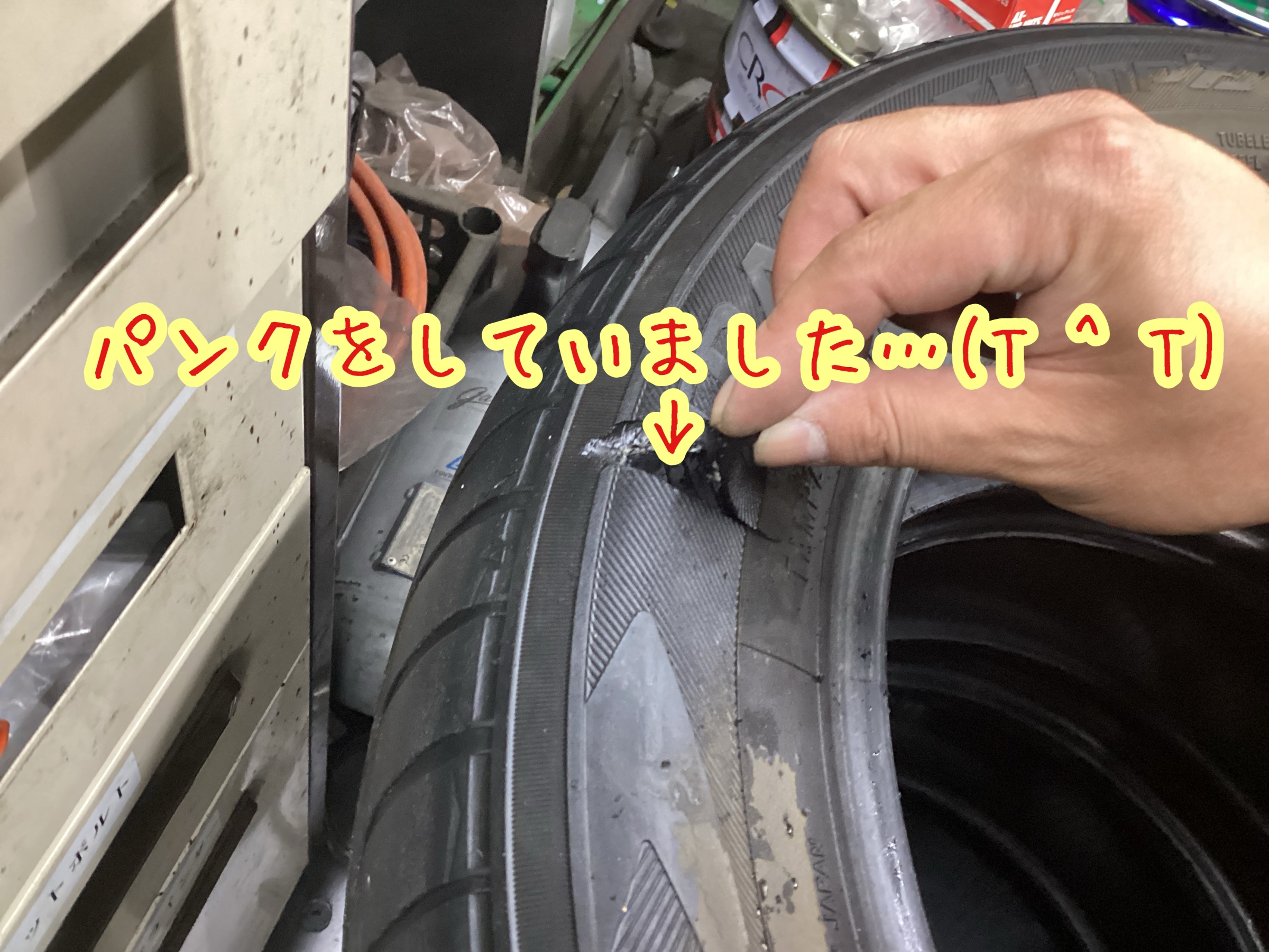 パンクをしてタイヤ交換になりました!