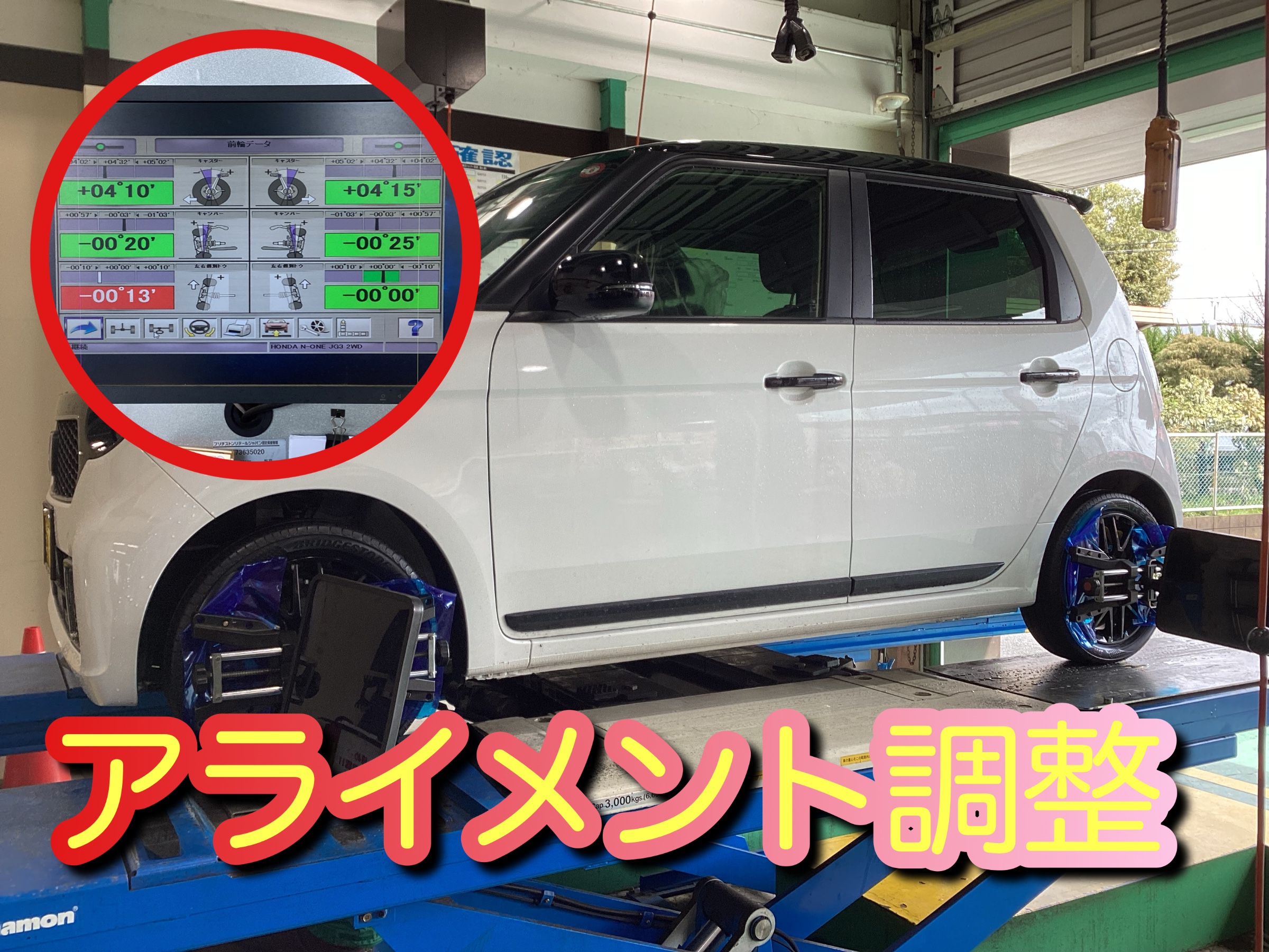 今回はHONDA N-ONEのタイヤ交換とアライメント調整です♬