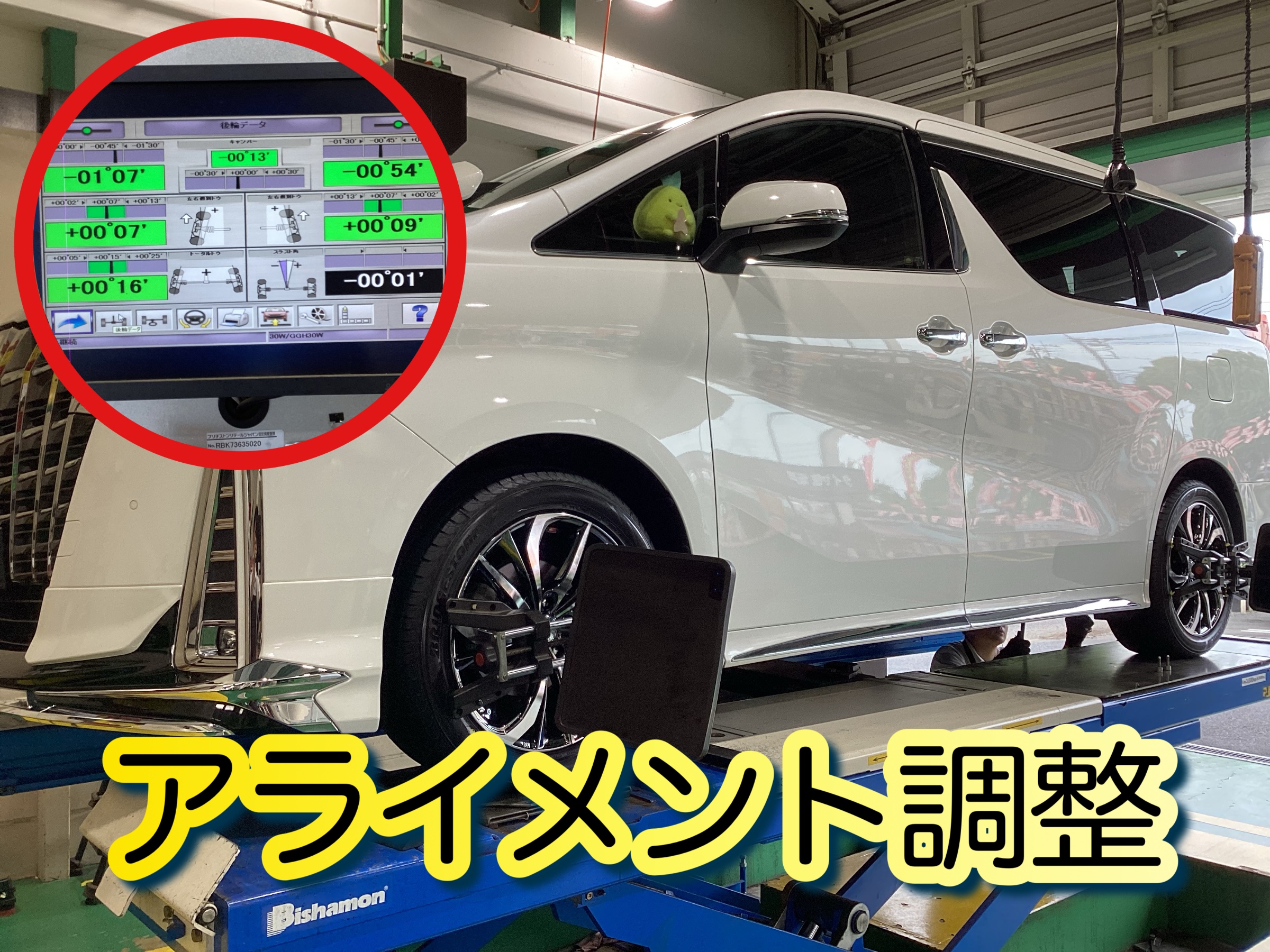 せっかくのタイヤ&ホイールセットですから、タイヤが長持ちするようにアライメント調整も行いました♬