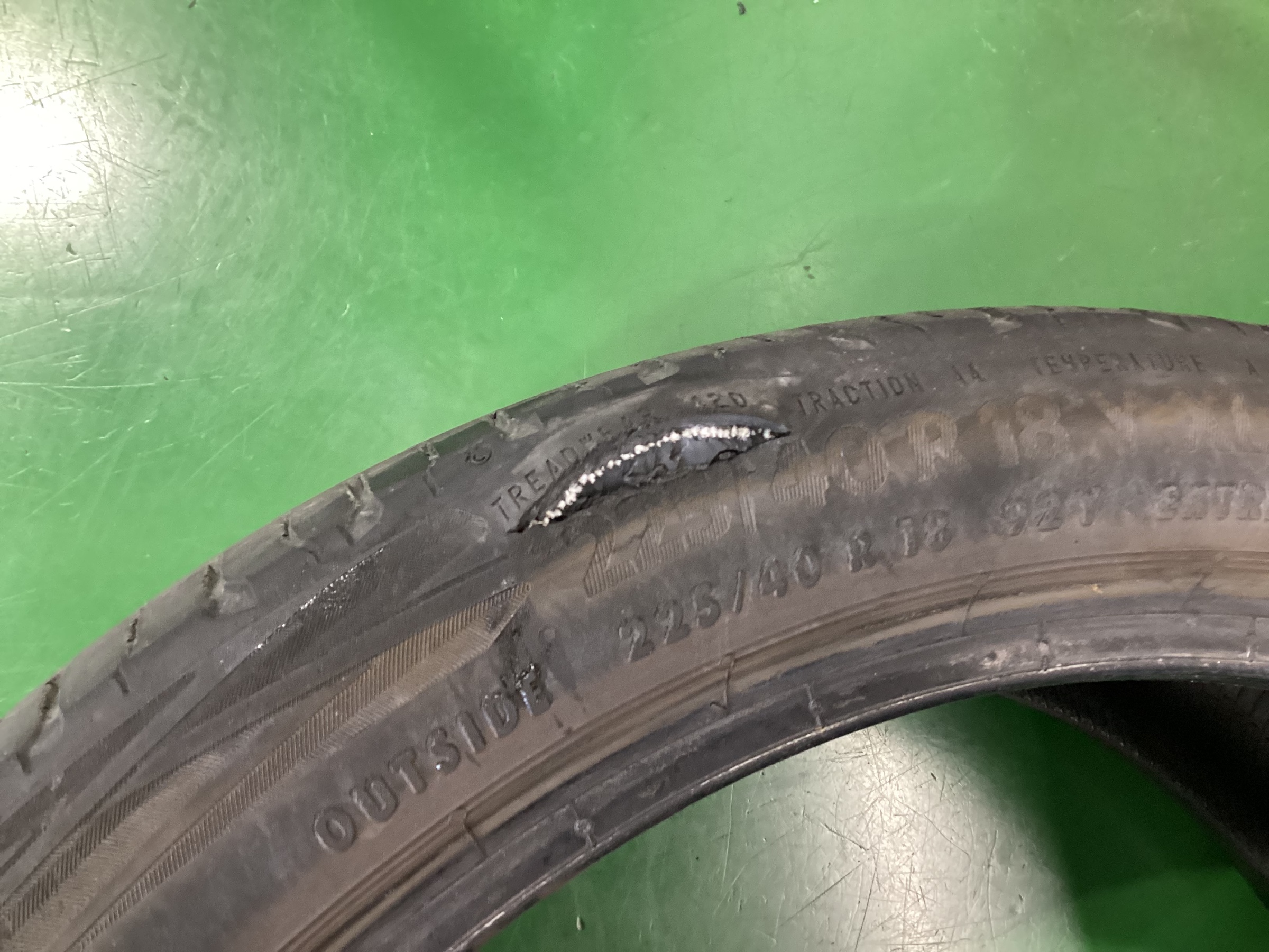タイヤ側面に大きな傷があり、