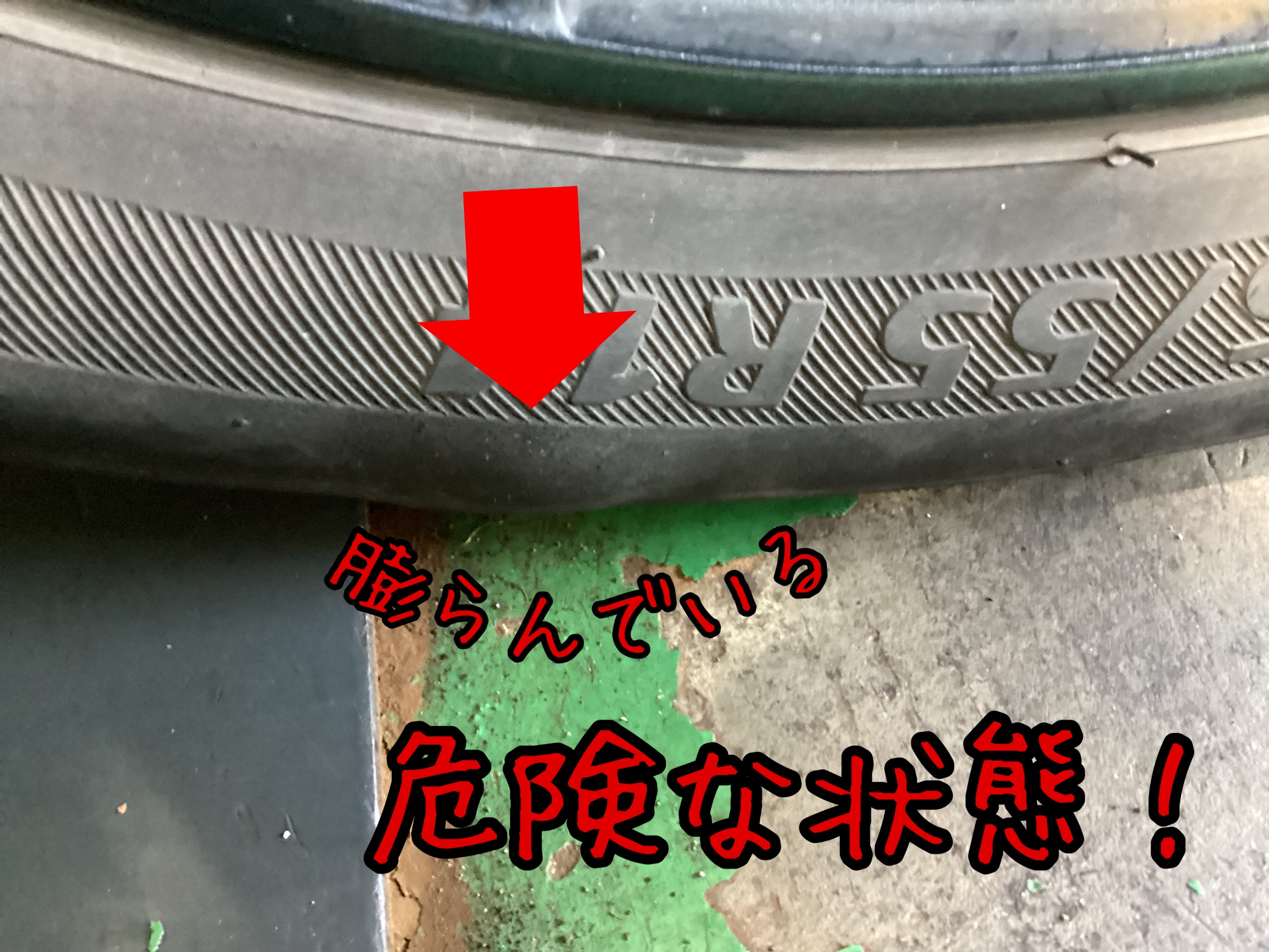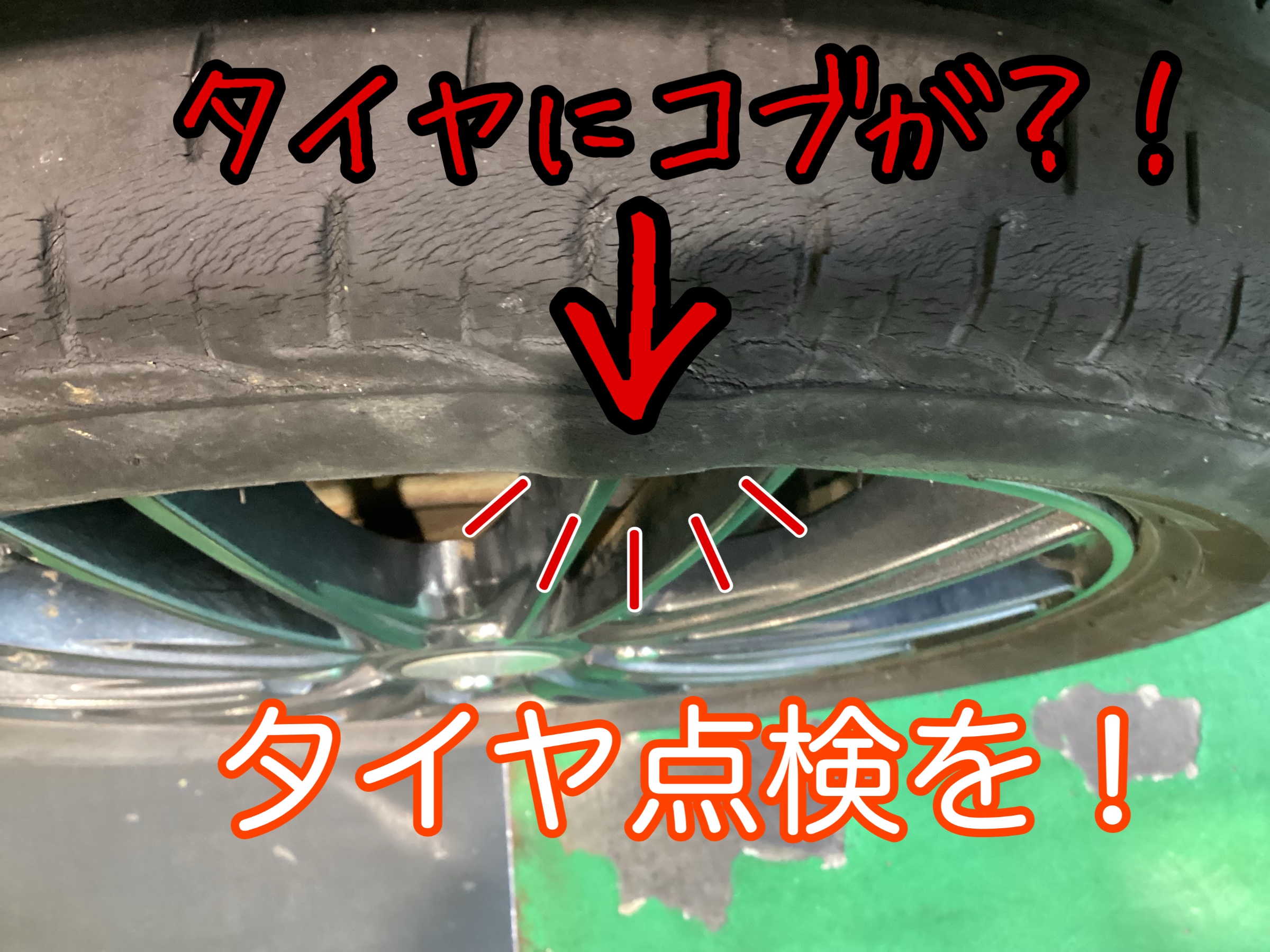 タイヤを見てみると、なんとコブが!
