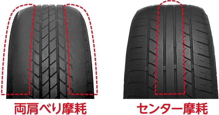 偏摩耗を起こしているとタイヤの寿命も短くなってしまったり、振動や騒音の原因にも繋がります。タイヤの性能を減らしてしまうことになるのです(;ω;)