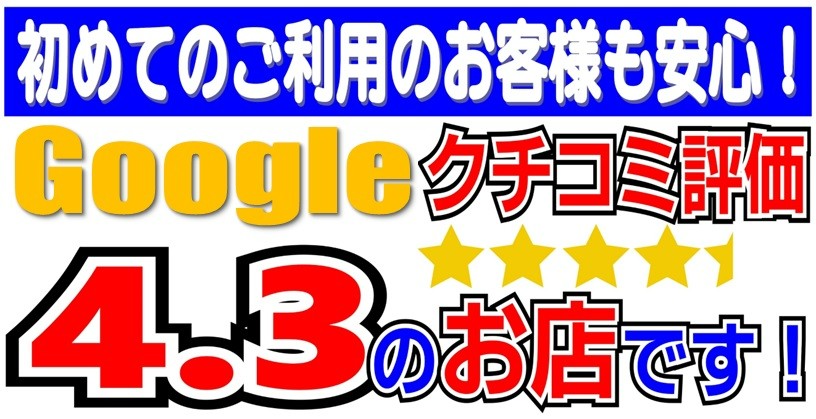 Google口コミ★★★★⭐︎4.3の評価頂いてるお店です!
