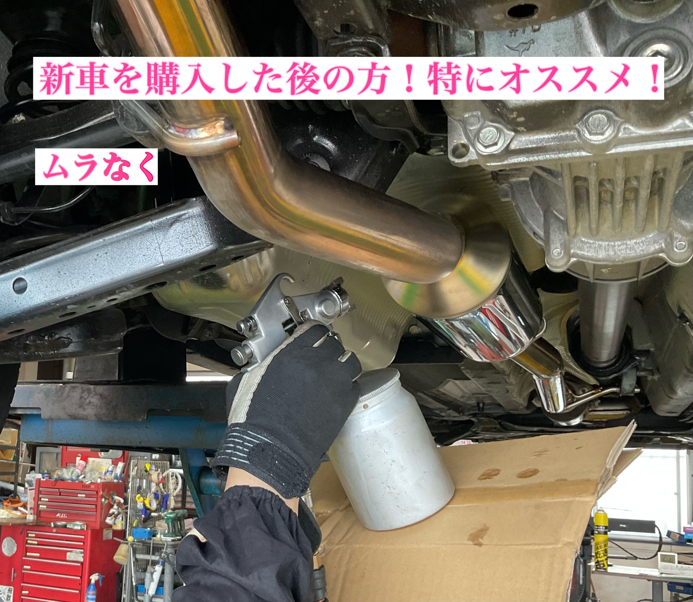 新車を購入した方は下回りの防錆を、行なっていない方が多いと思いますので購入した後は是非、防錆を行なった方が良いかと思います!