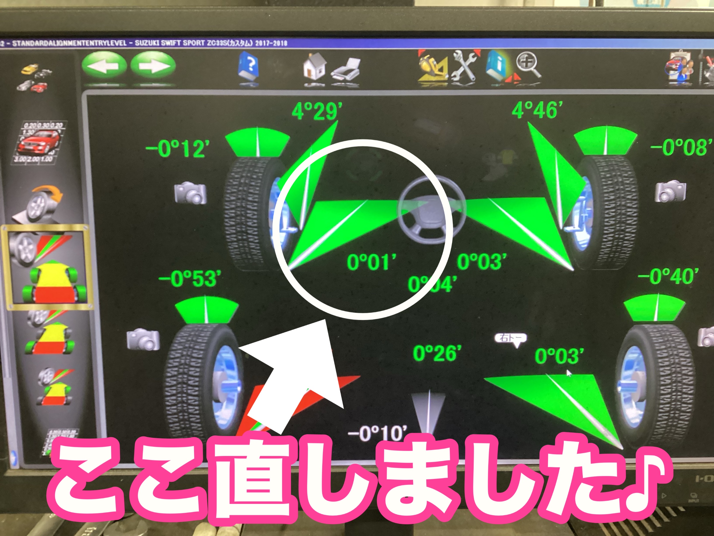 アライメント作業 スズキ スイフト(`_´)ゞ