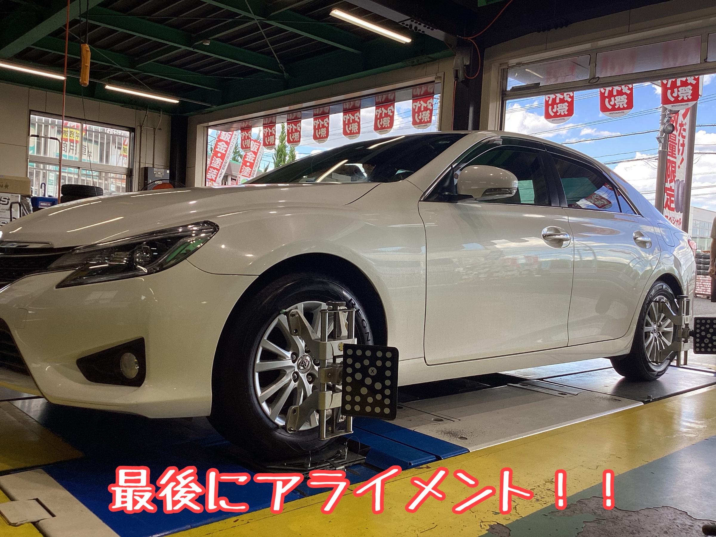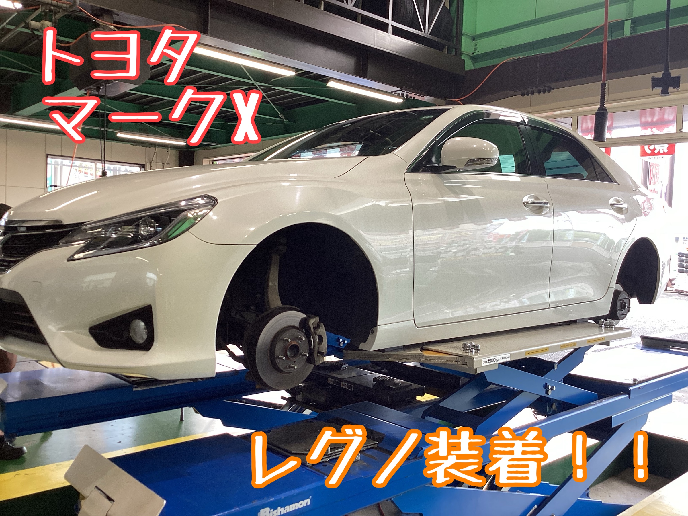 今回はマークXにブリヂストンの大人気コンフォートタイヤ、レグノお取り付けいたしました。
