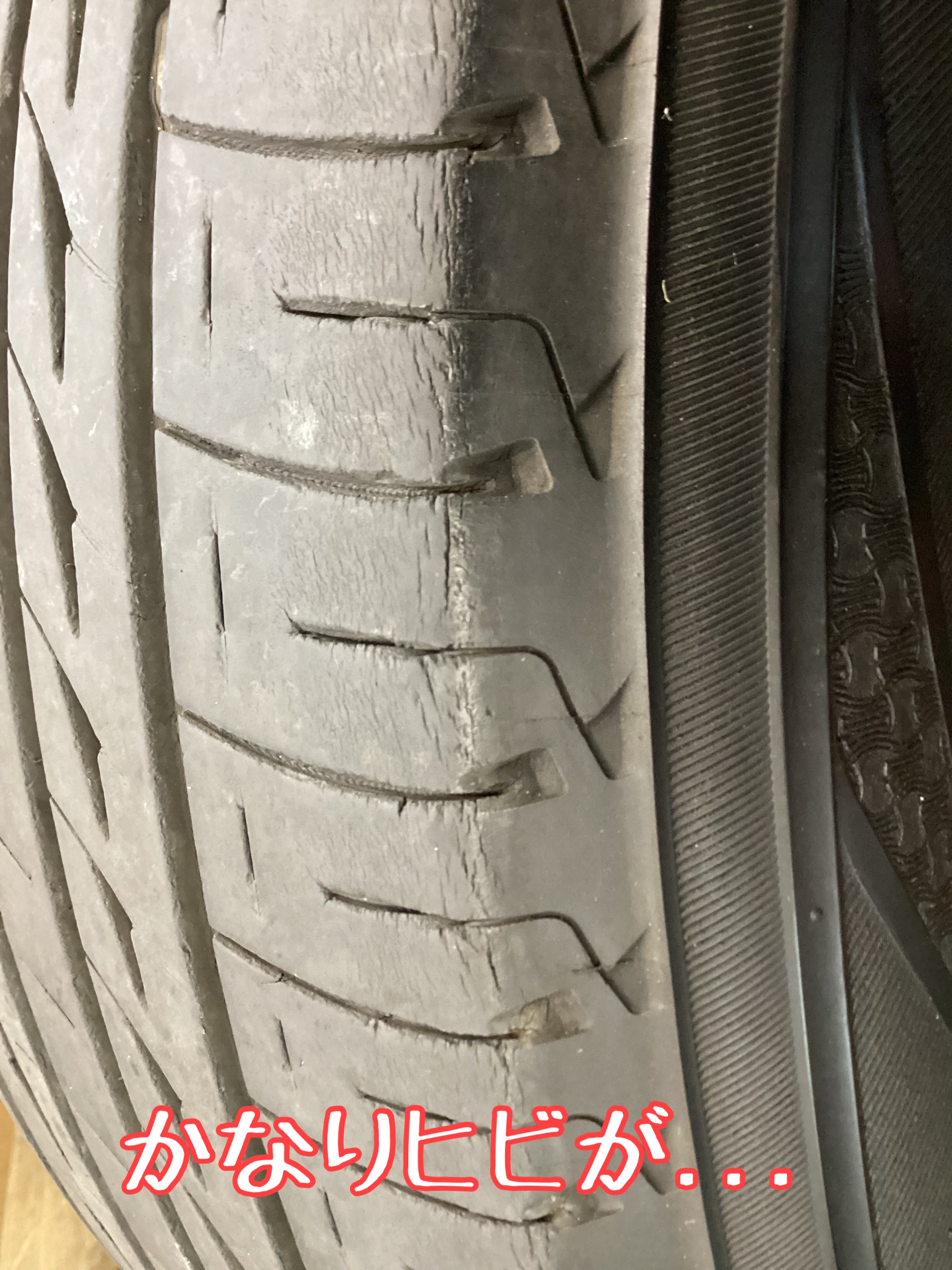 タイヤをよく見てみると製造から5年ほど経ち、かなりヒビが入っている状態でした。