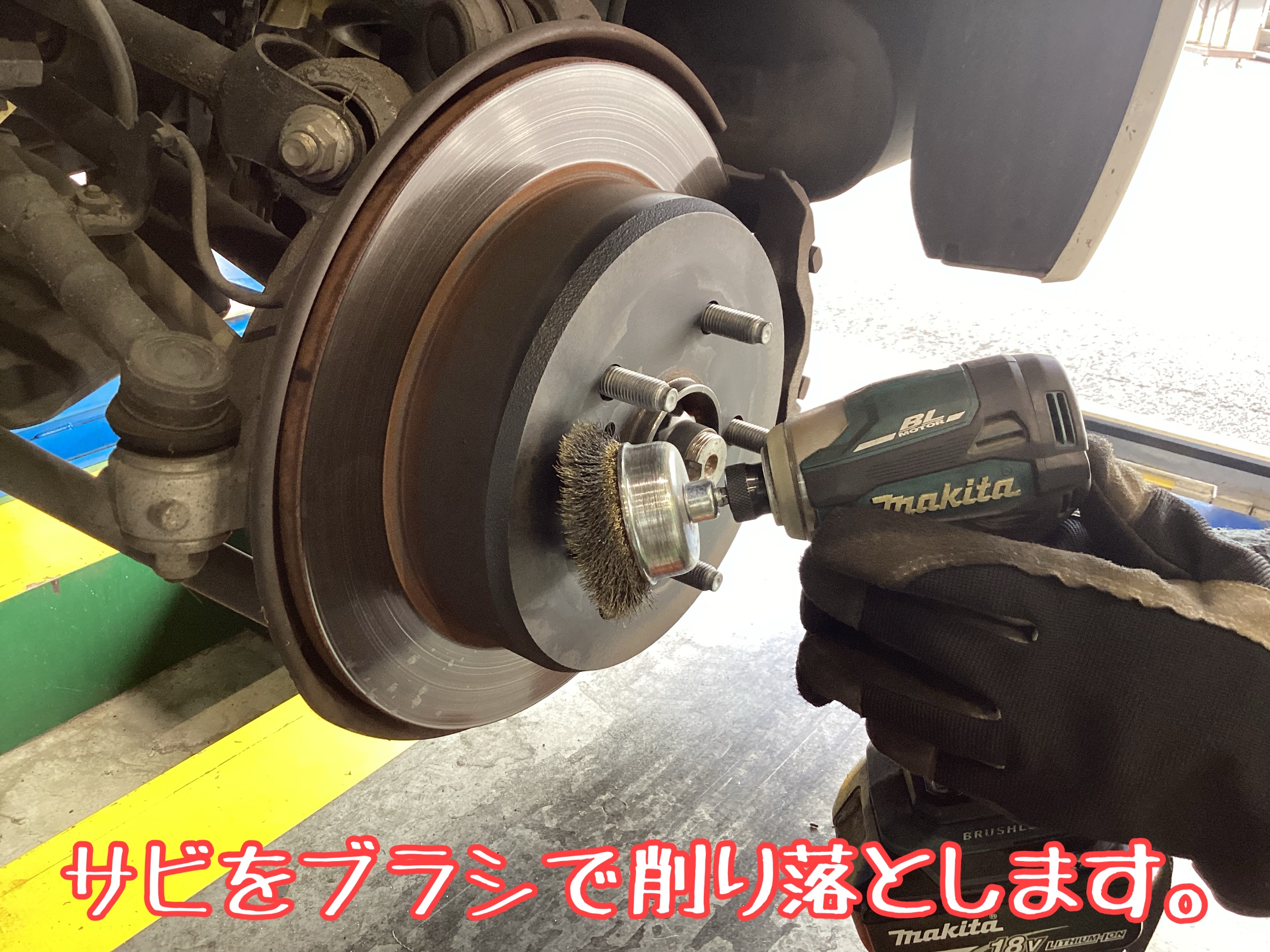 タイヤの取り付け面、ハブもブラシでサビを落として防錆剤を塗布します。