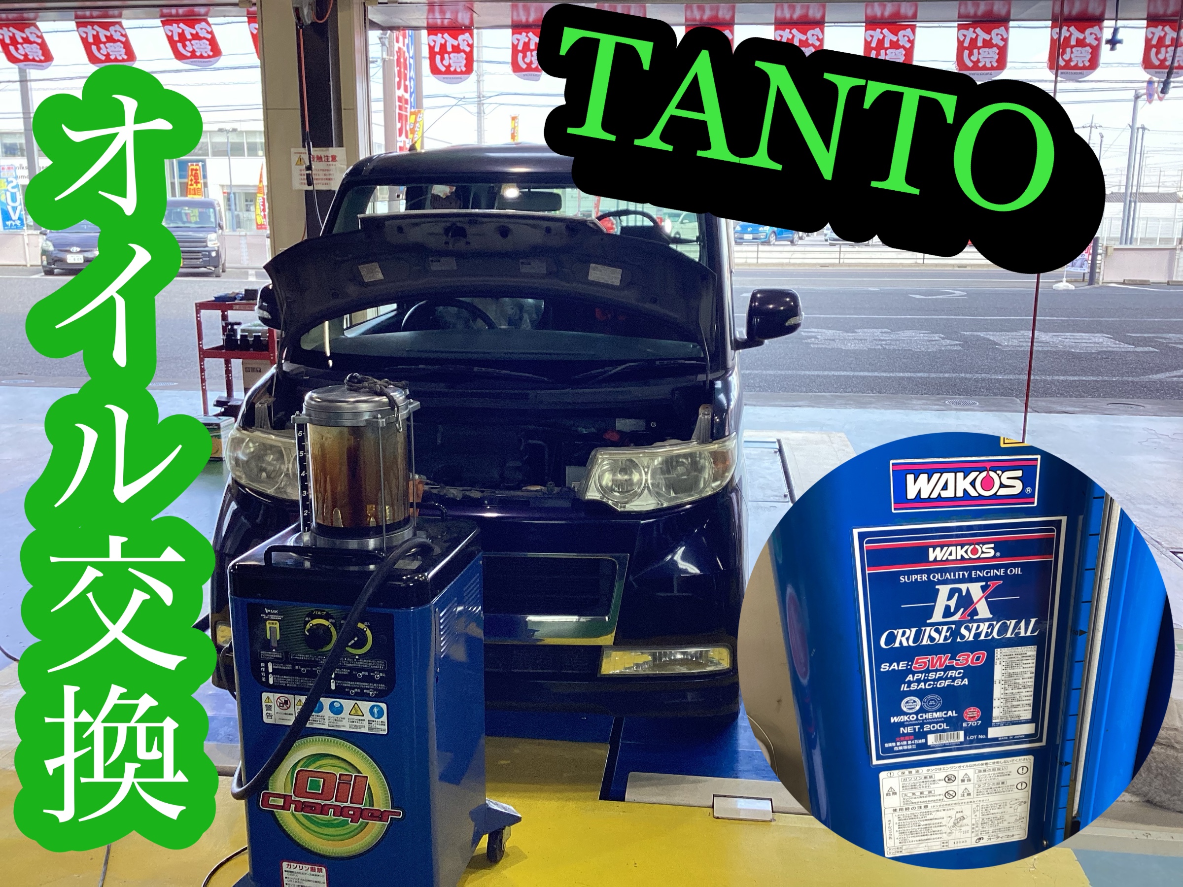本日、ダイハツ タントのオイル交換作業しております(^_-)-☆