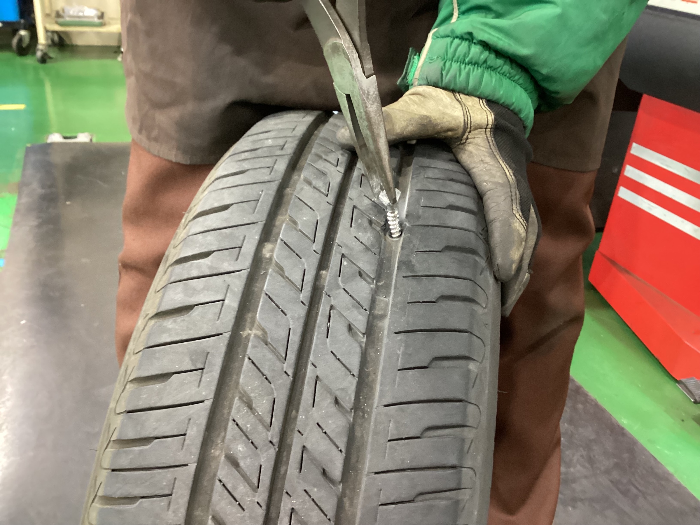 1:刺さった異物がタイヤの中央寄り