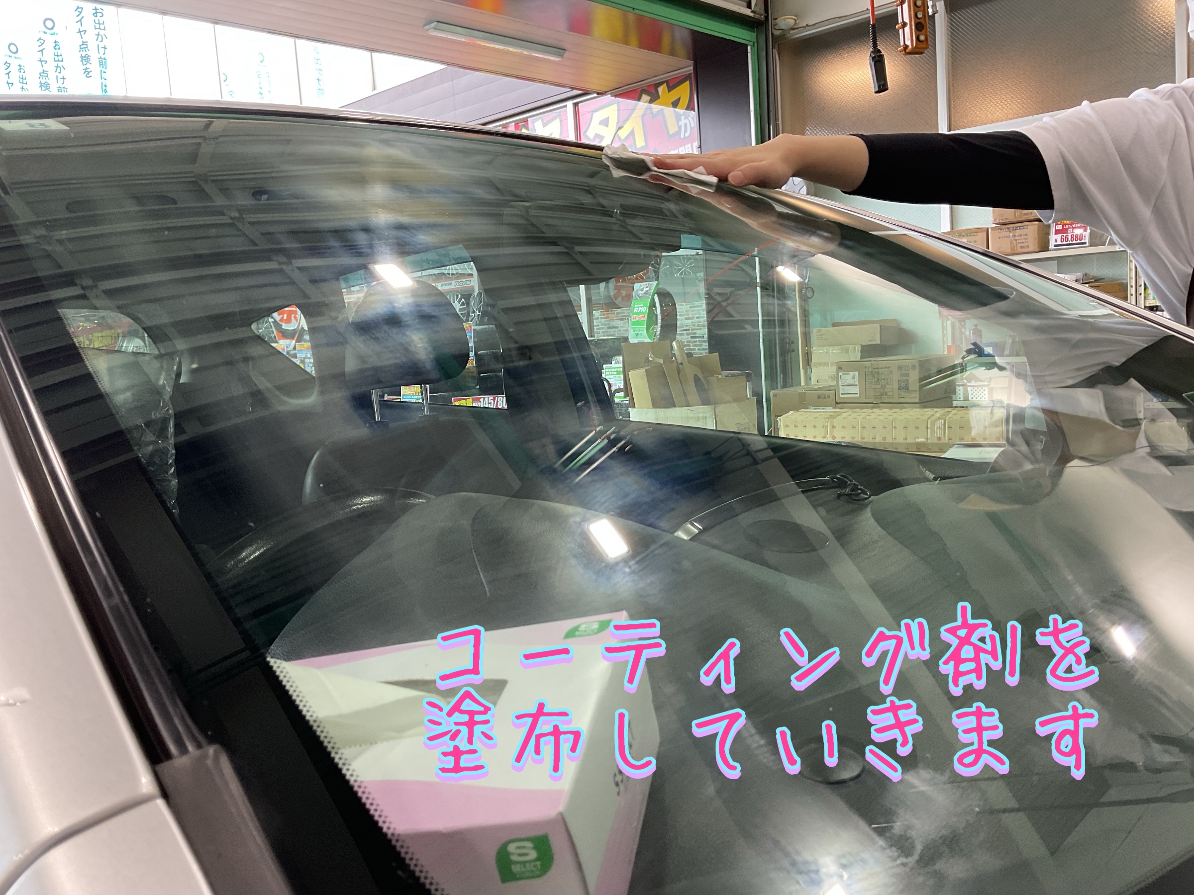 コーティングを行うことで、ガラス表面の細かい傷が滑らかになり、ワイパーの摩耗を抑えることも出来ます。それだけでなく、ガラスの汚れが落ちやすく、付きづらくなります(o^^o)