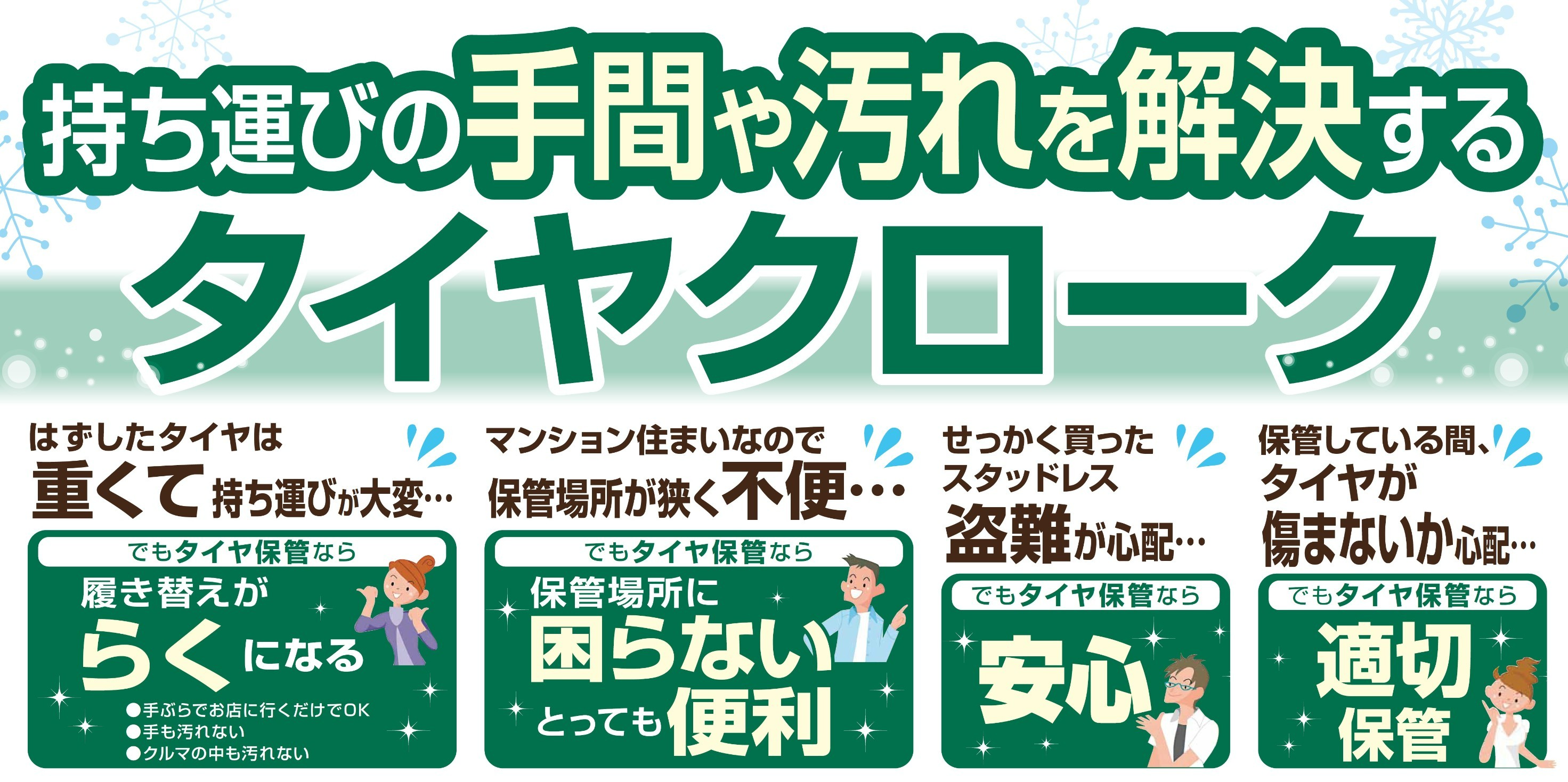 タイヤ館坂戸のタイヤ保管プログラム、【タイヤクローク】のご利用で、もっとスムーズに履き替えが可能です!
