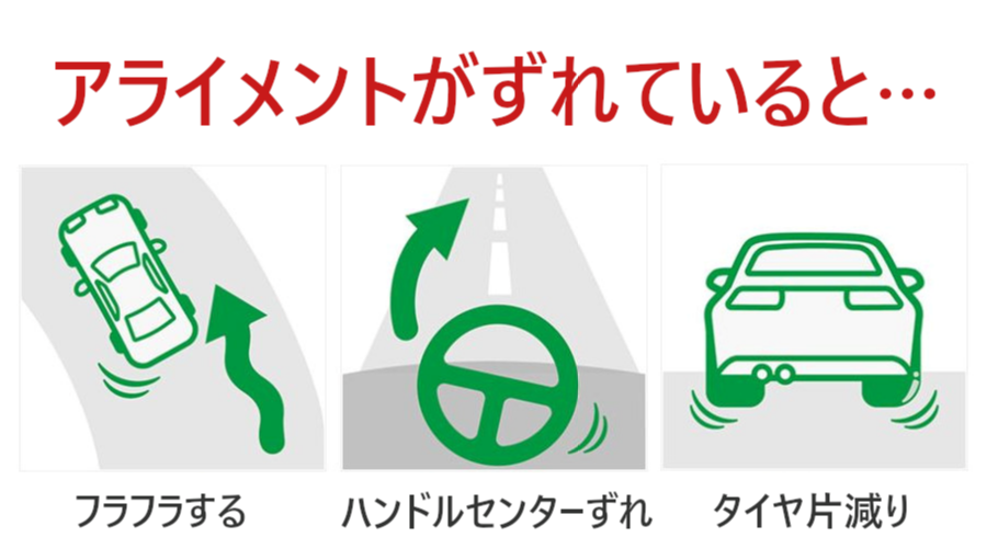 運転に違和感を感じるのはもちろん、タイヤが片減りをしてしまうので