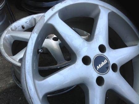 さらに、ホイールも塗装面の劣化によってパリパリと