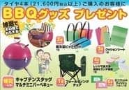 タイヤ4本¥21.600以上ご購入でBBQグッズプレゼント(抽選になります)