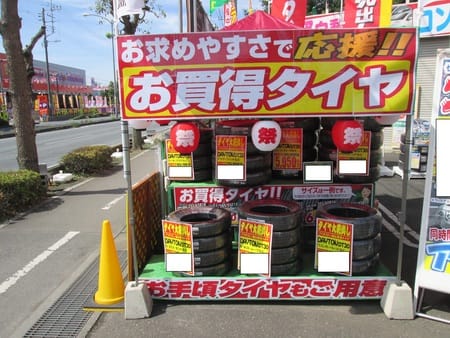 店頭には数量限定のお買い得タイヤも大量展示いたしております!