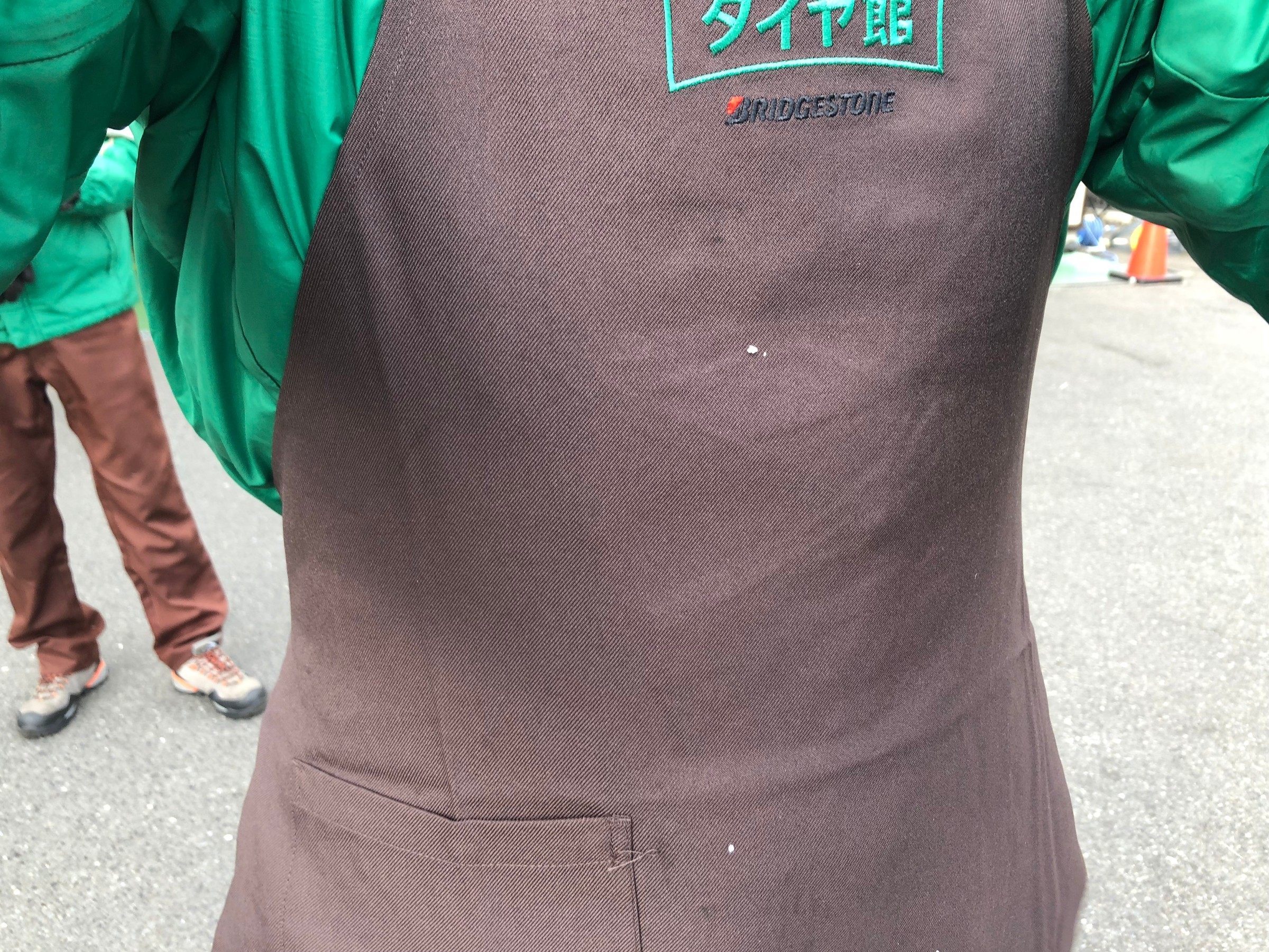 ちょっと見にくいのですがエプロンに付いている白いのが雪です・・・;