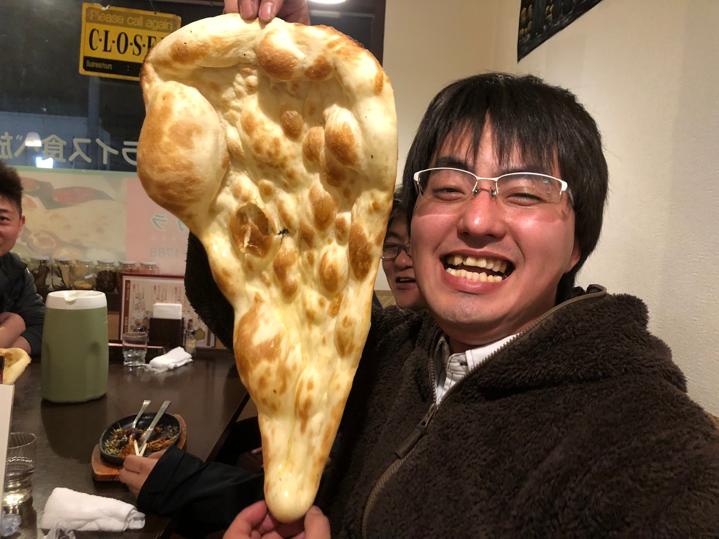 コースを頼むとナンが食べ放題なのですが、これがまたデカイ!!