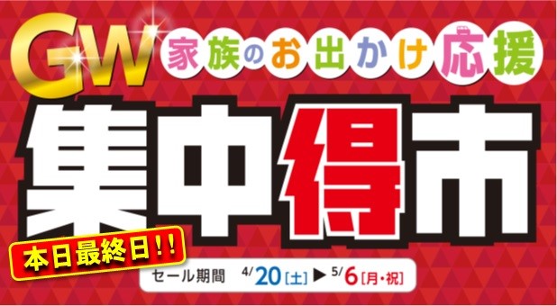 本日セール最終日! ポスト 2019年5月6日 こんにちはタイヤ館坂戸店です。 GW集中得市セールも本日で最終日です! 長い連休で疲れた愛車のメンテナンスはいかがでしょうか? ご来店お待ちしております。 担当:小泉