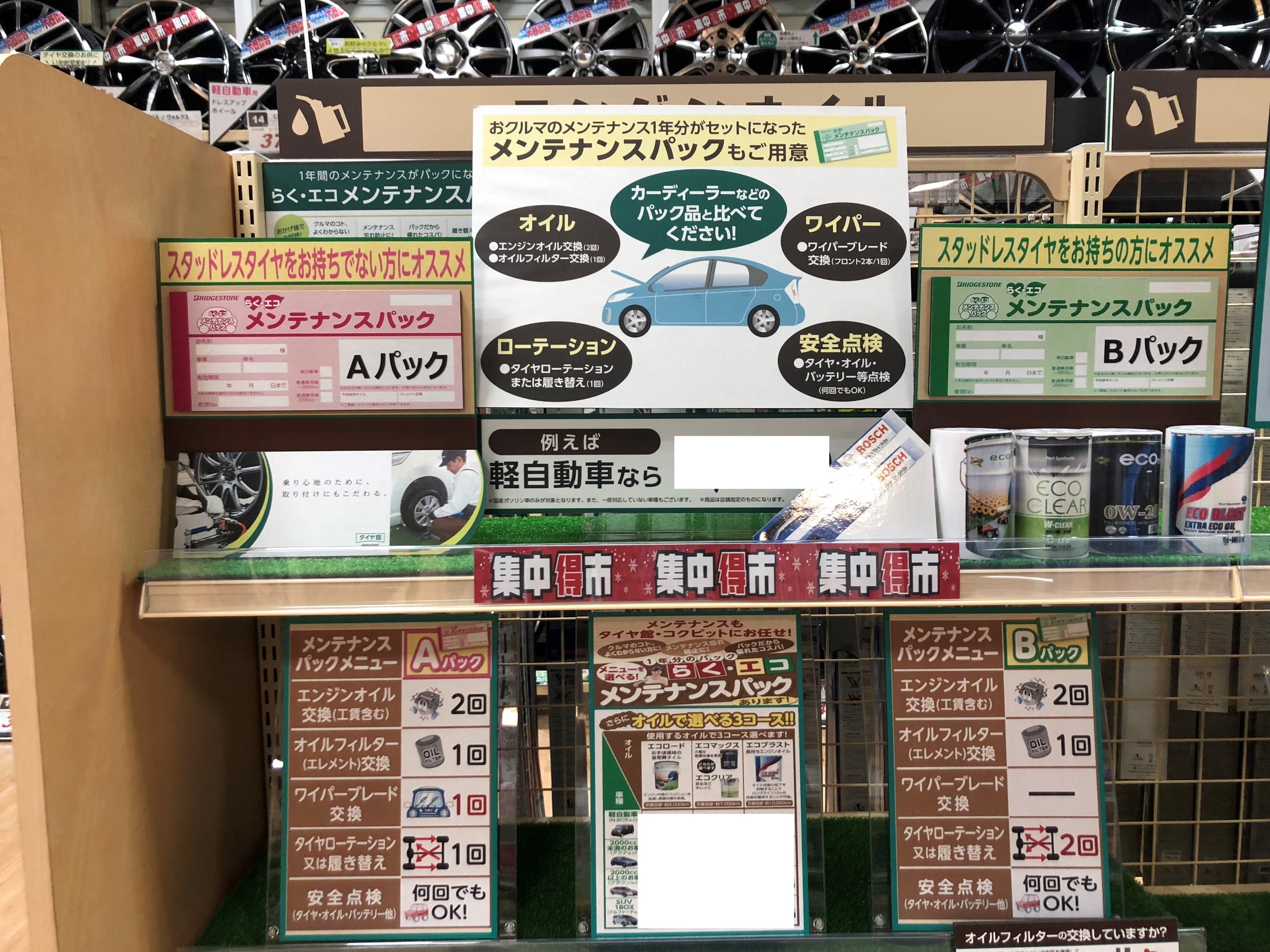 タイヤ館ではお車のメンテナンスにもってこいのお得なメンテナンスパックを