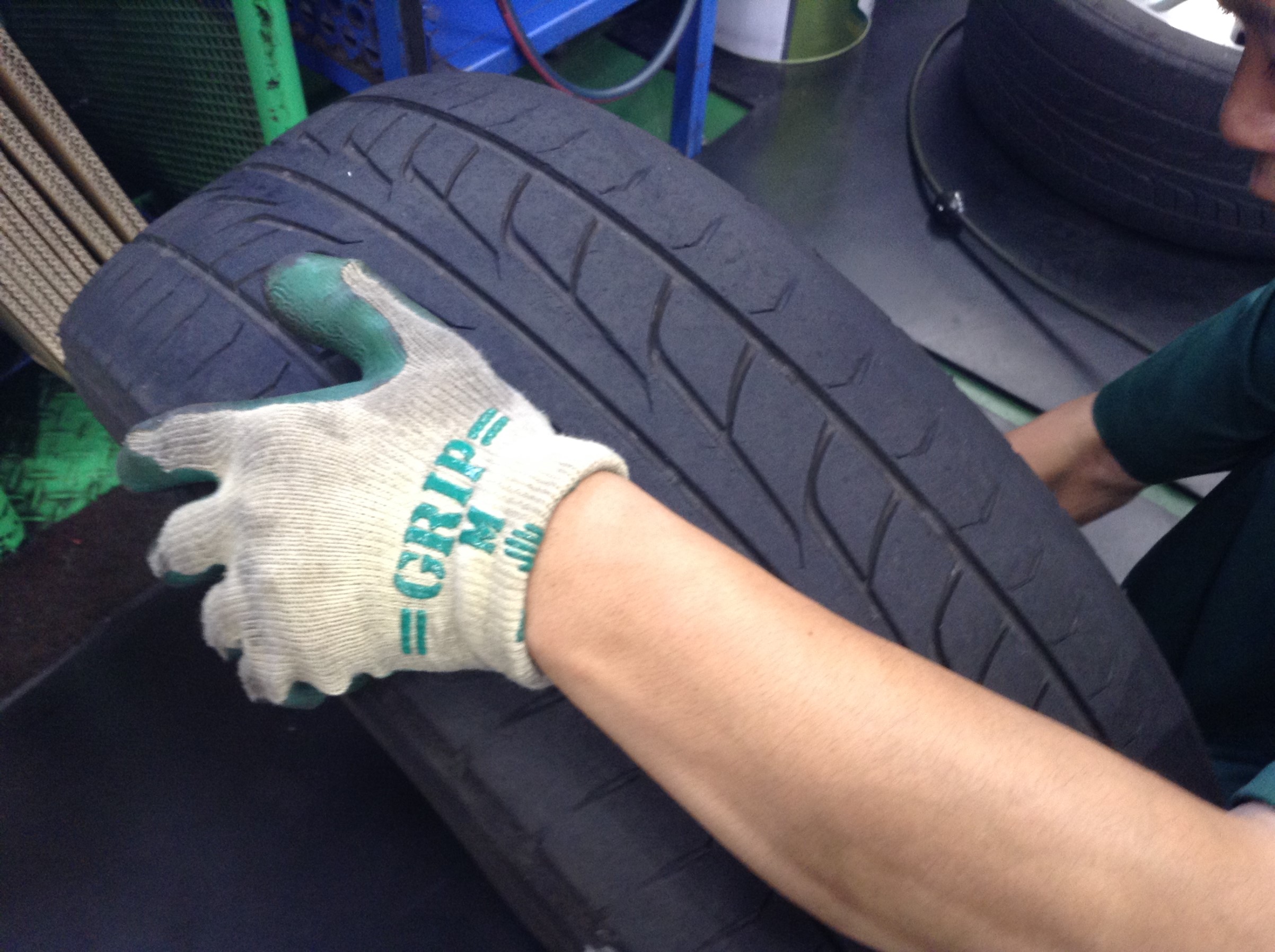 交換前のタイヤです。摩耗していますね。