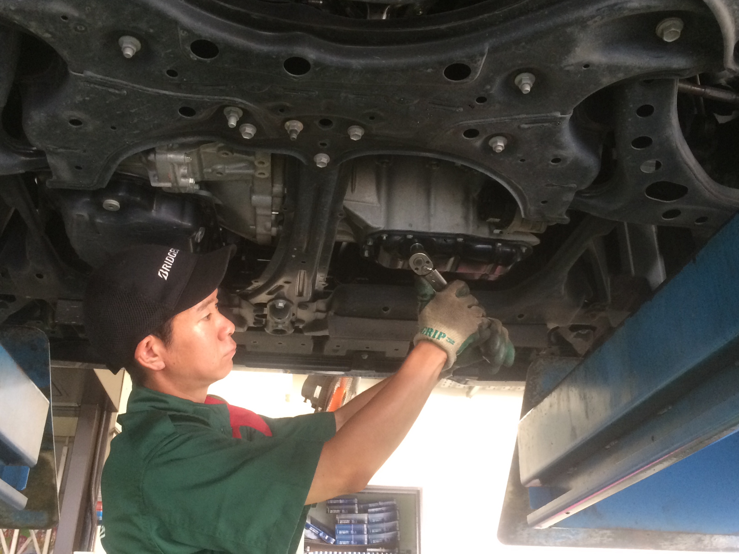 エンジンオイルを交換して漏れていないかチェックしているところですね!