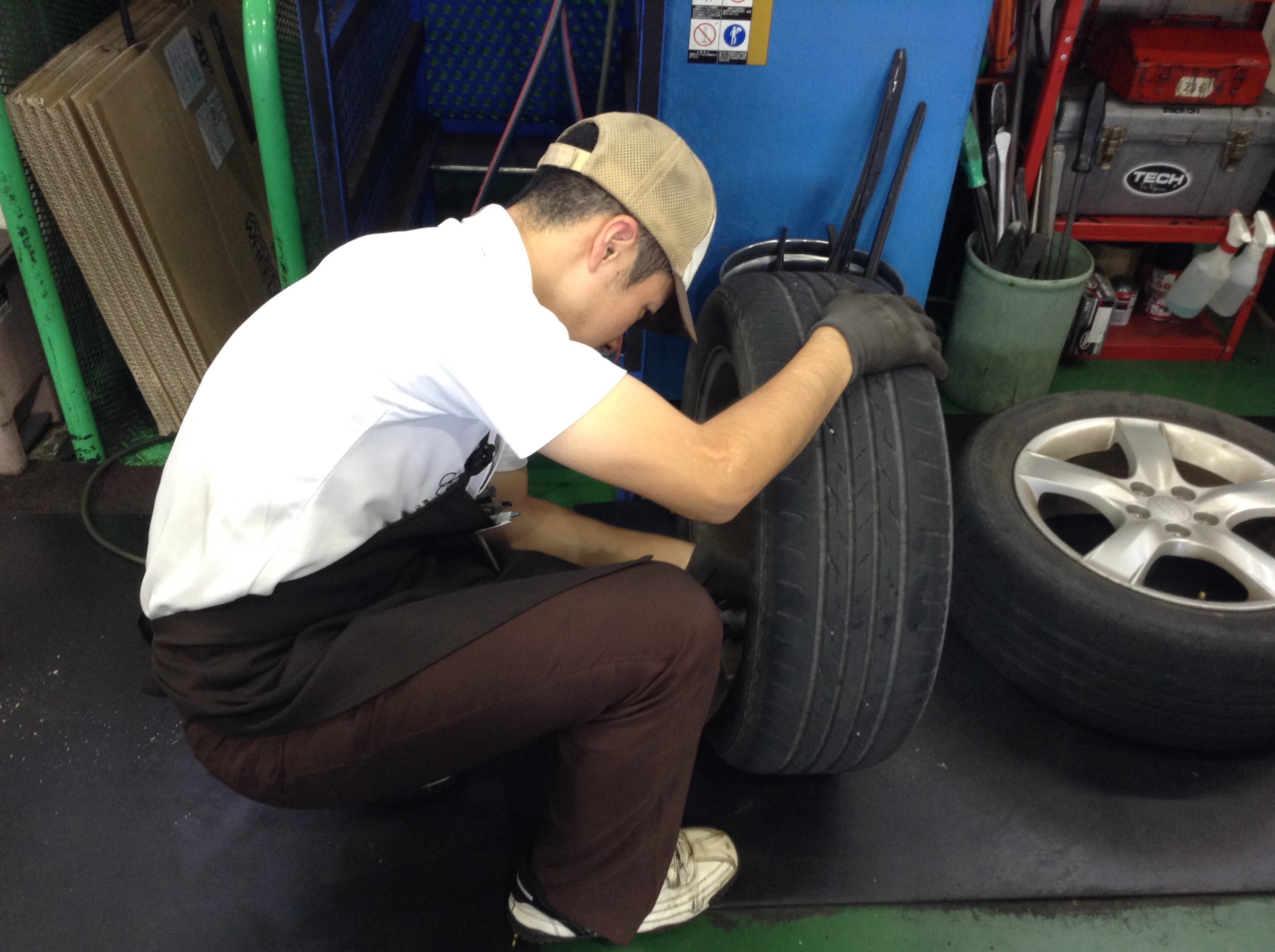 交換前のタイヤで御座います。摩耗しておりスリップサインも露出してます。