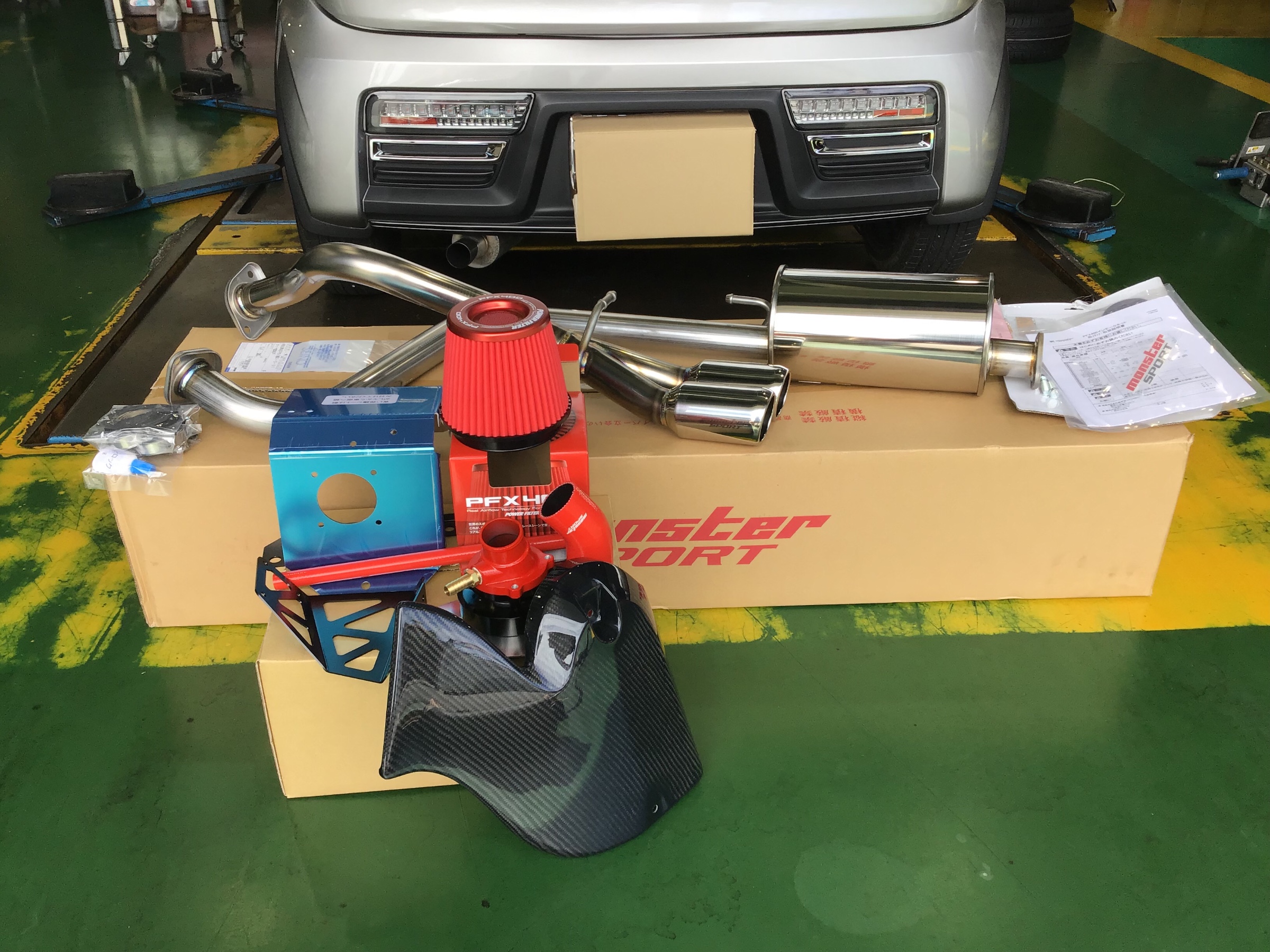 本日はモンスタースポーツからりりされています、スポーツマフラーとインテークkitの紹介です!