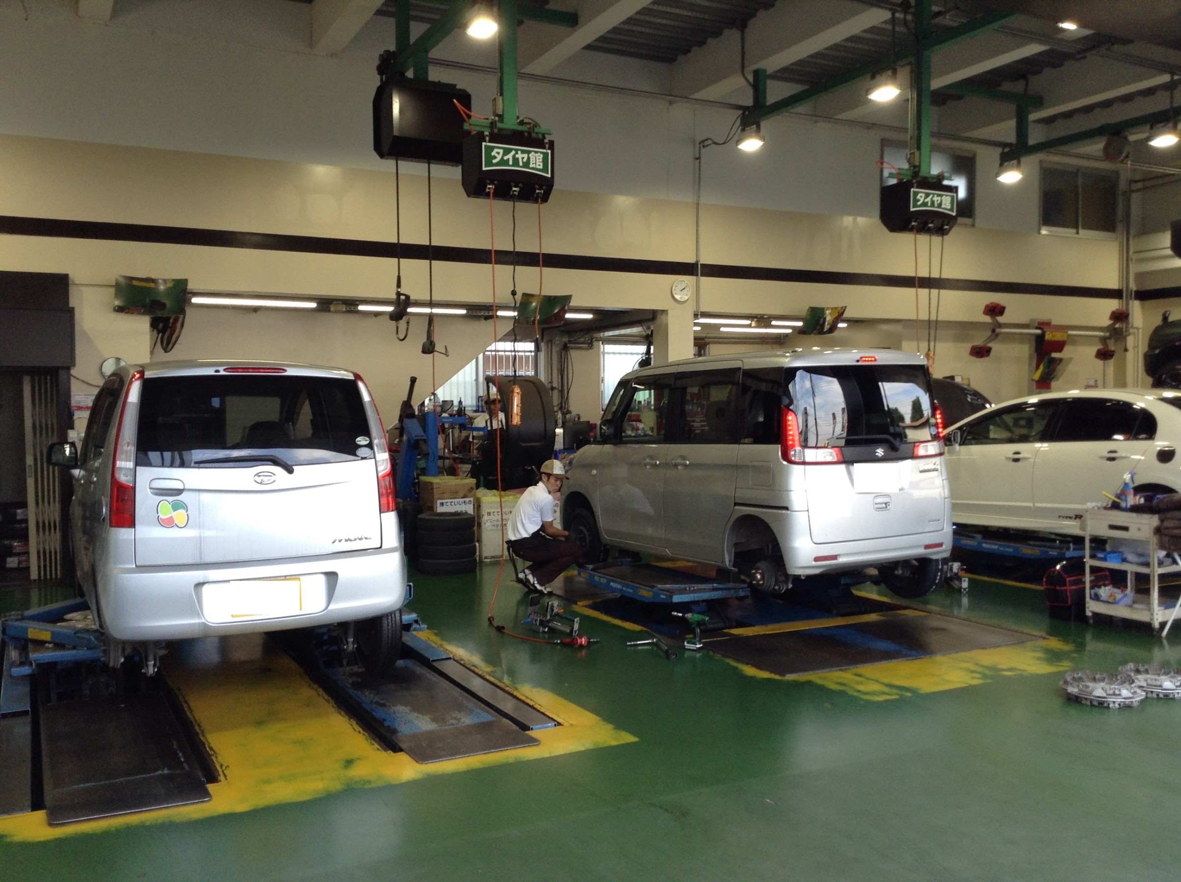 タイヤ交換作業にて2台受付中ですが作業レーンに