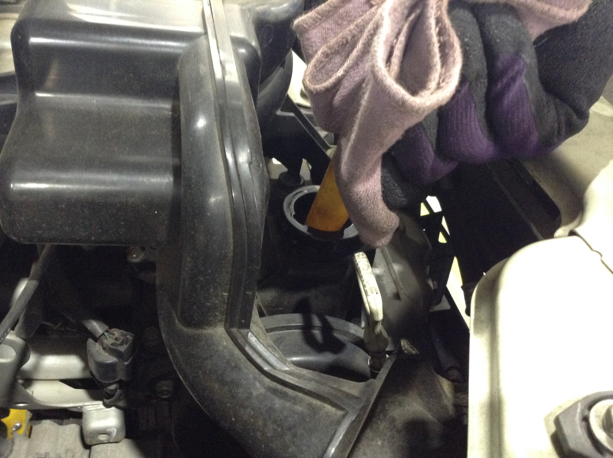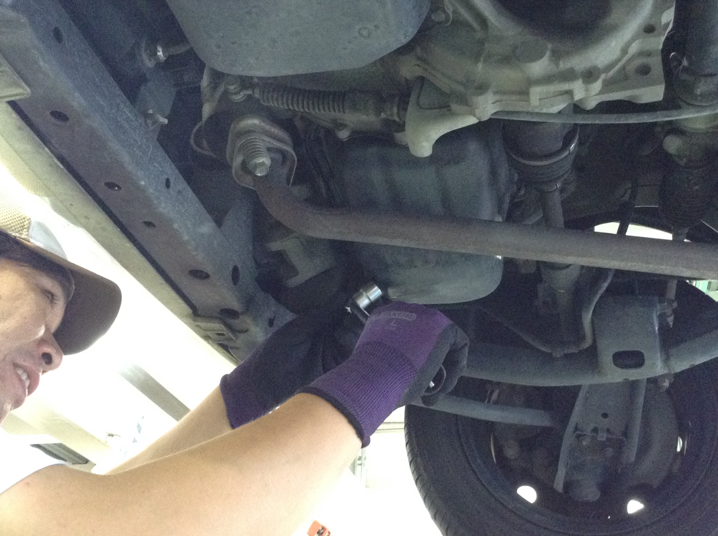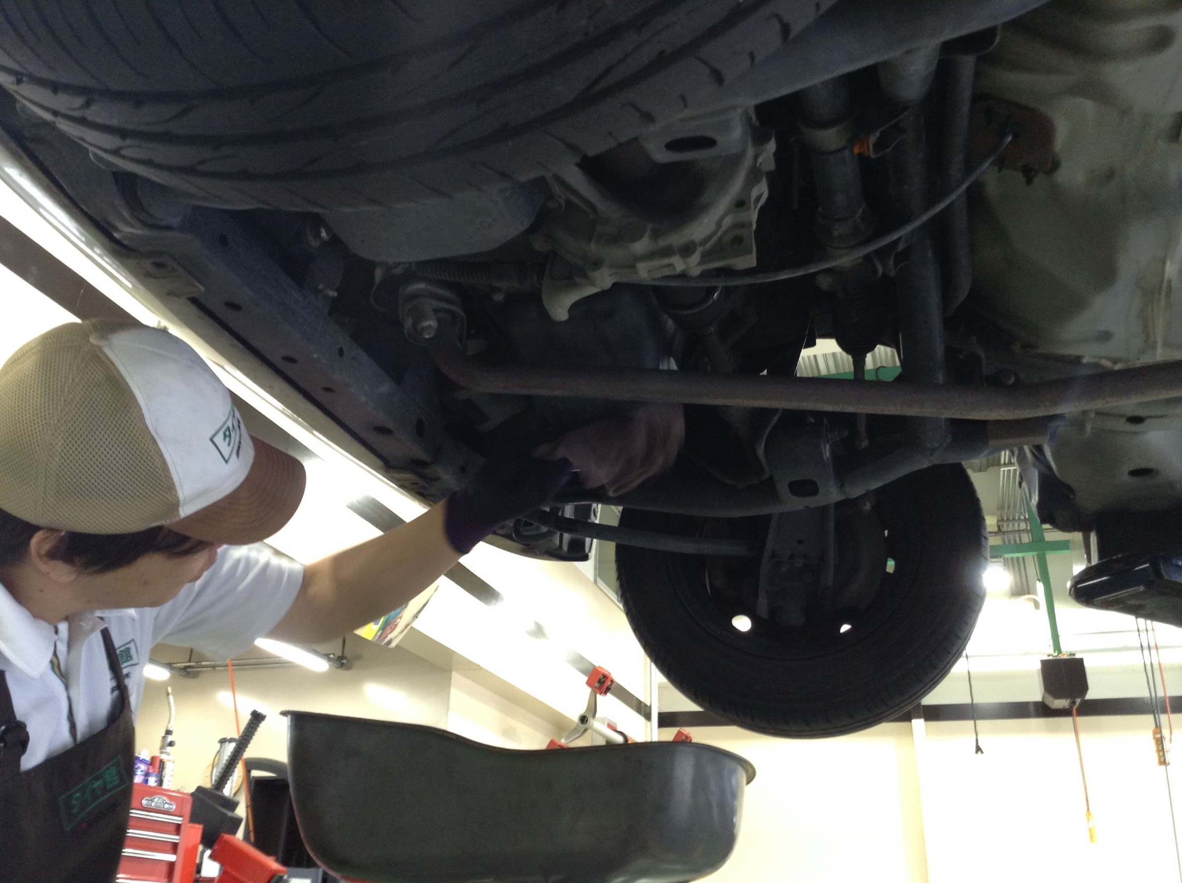 オイル交換中では、タイヤ空気圧点検、ワックス&ホイール拭き取り実施。