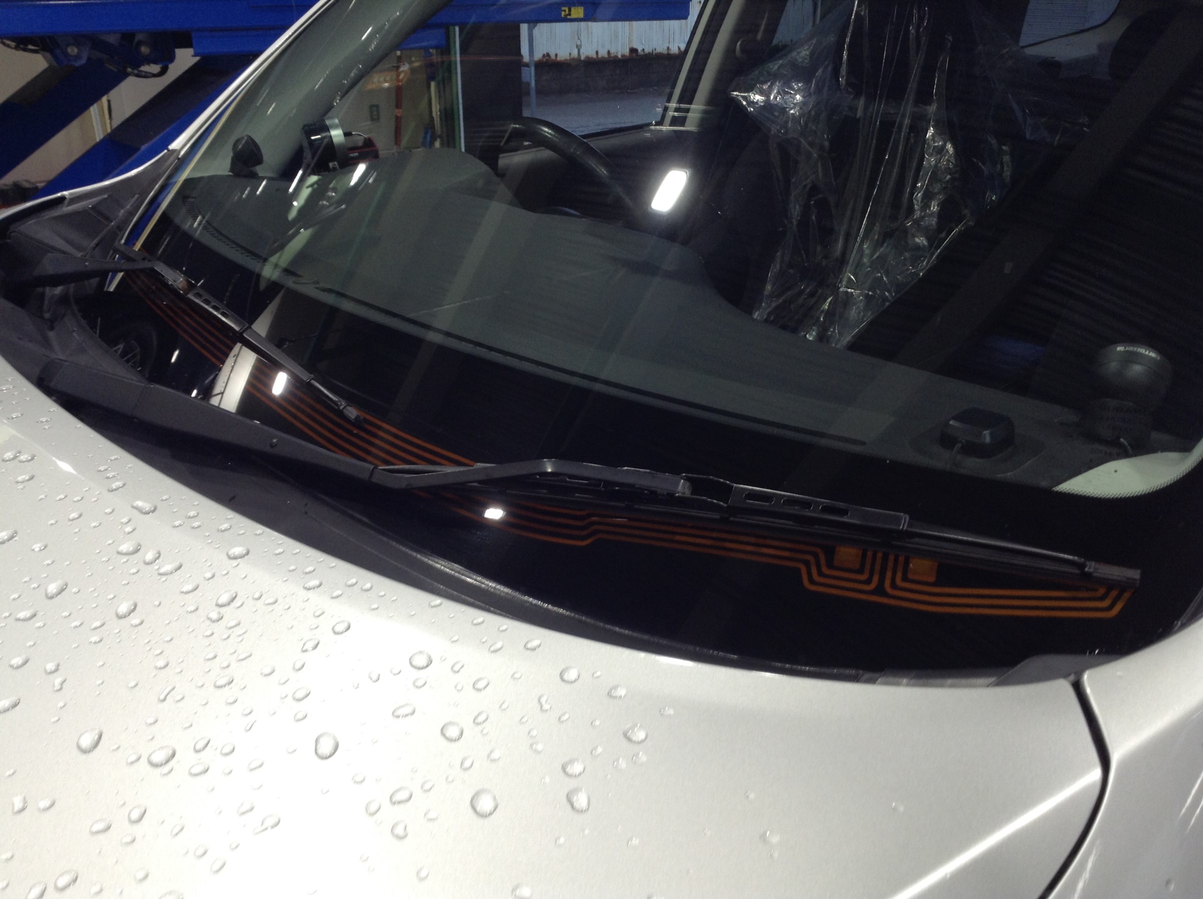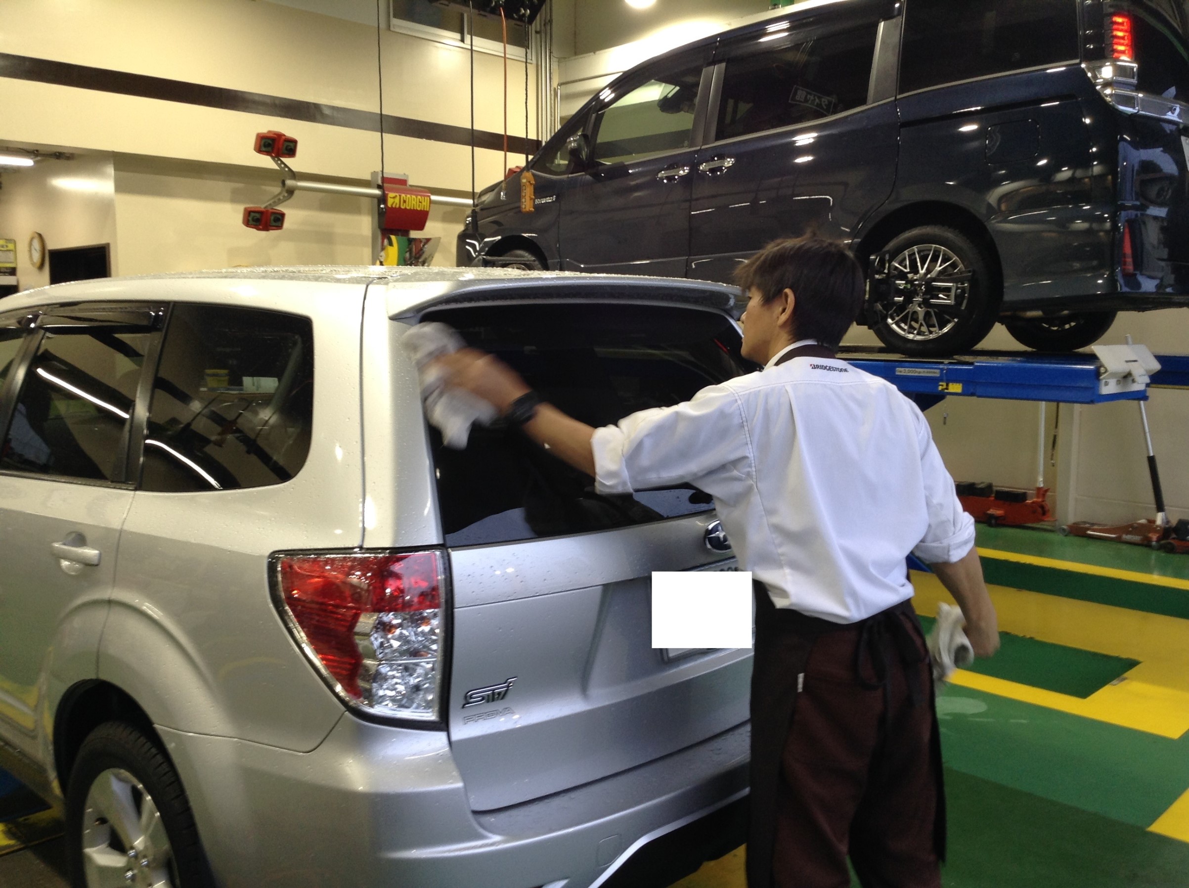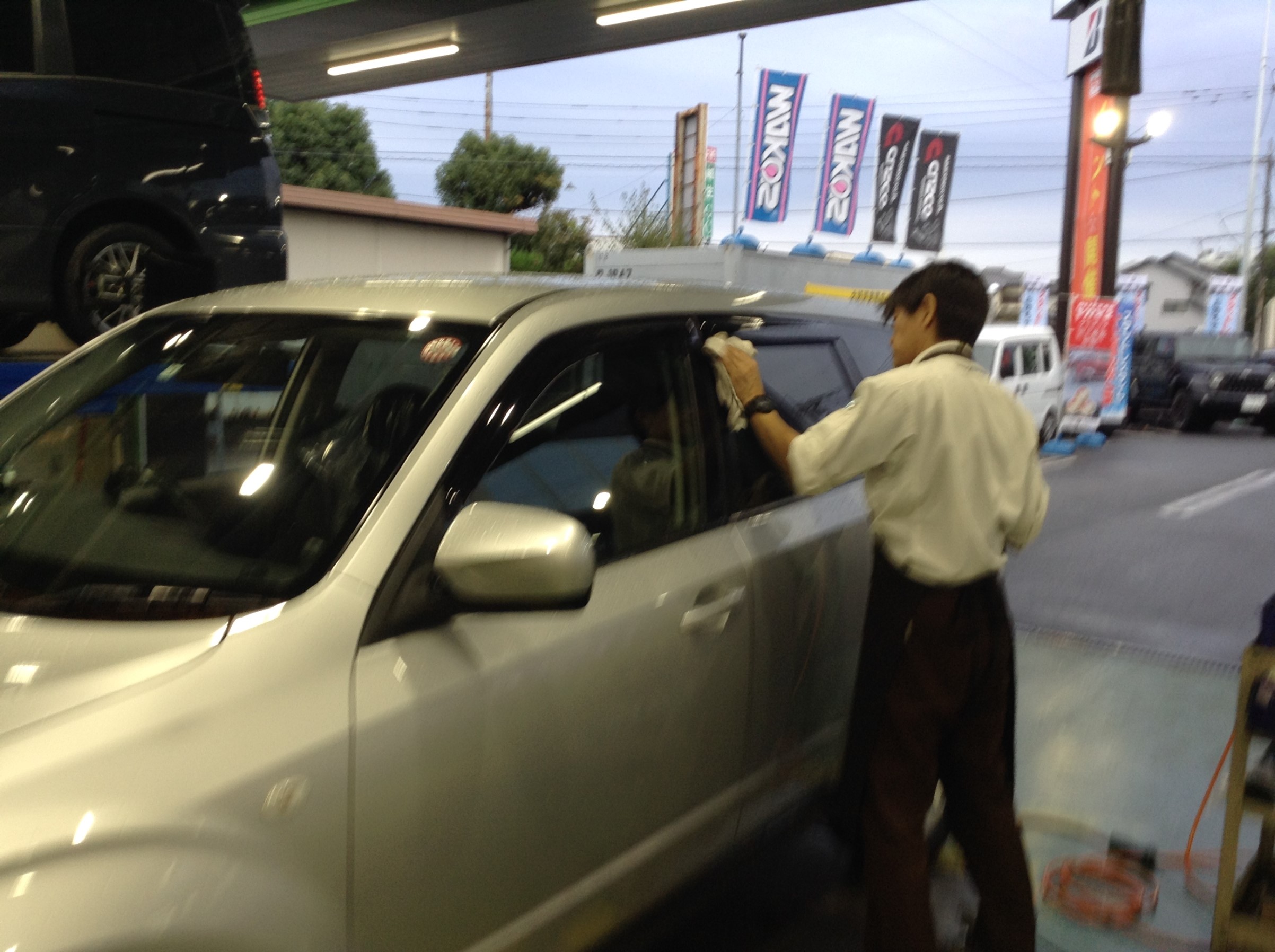 お客様のお車のガラスも綺麗に拭き取りをしております。