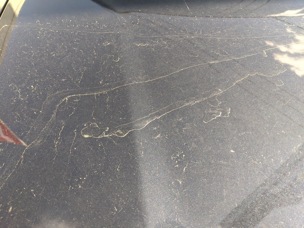 乾いたボンネットを見ると黄色い汚れみたいなものが出てきました。