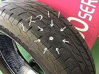 こんにちは(^-^)/ 肌寒いですね。昨日の気温は一体…(*_*) パンク修理希望のお客様のご来店です。 釘が刺さったそうですが パンク修理剤を使っても直らなかったので 当店にご来店されたそうです。 タイヤをよく見たら 刺さっている角度もほぼ 直角に刺さっていて位置的にも パンク修理できるものでし...