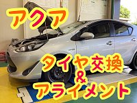 みなさん、こんにちは(*´∀`)ノシ タイヤ館坂戸店のホームページをご覧いただきありがとうございます(´ ▽ `) 今回はアクアのタイヤ交換をご紹介させていただきます。 偏摩耗と言って、タイヤが偏って摩耗しています。 タイヤを取り付ける前に、防錆コーティングを行いました。 最後にアライメント調整...