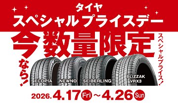 期間限定!!『タイヤスペシャルプライスデー』開催!!