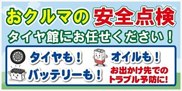 お出かけ前にタイヤ館坂戸で、お車の無料点検いかがでしょうか!