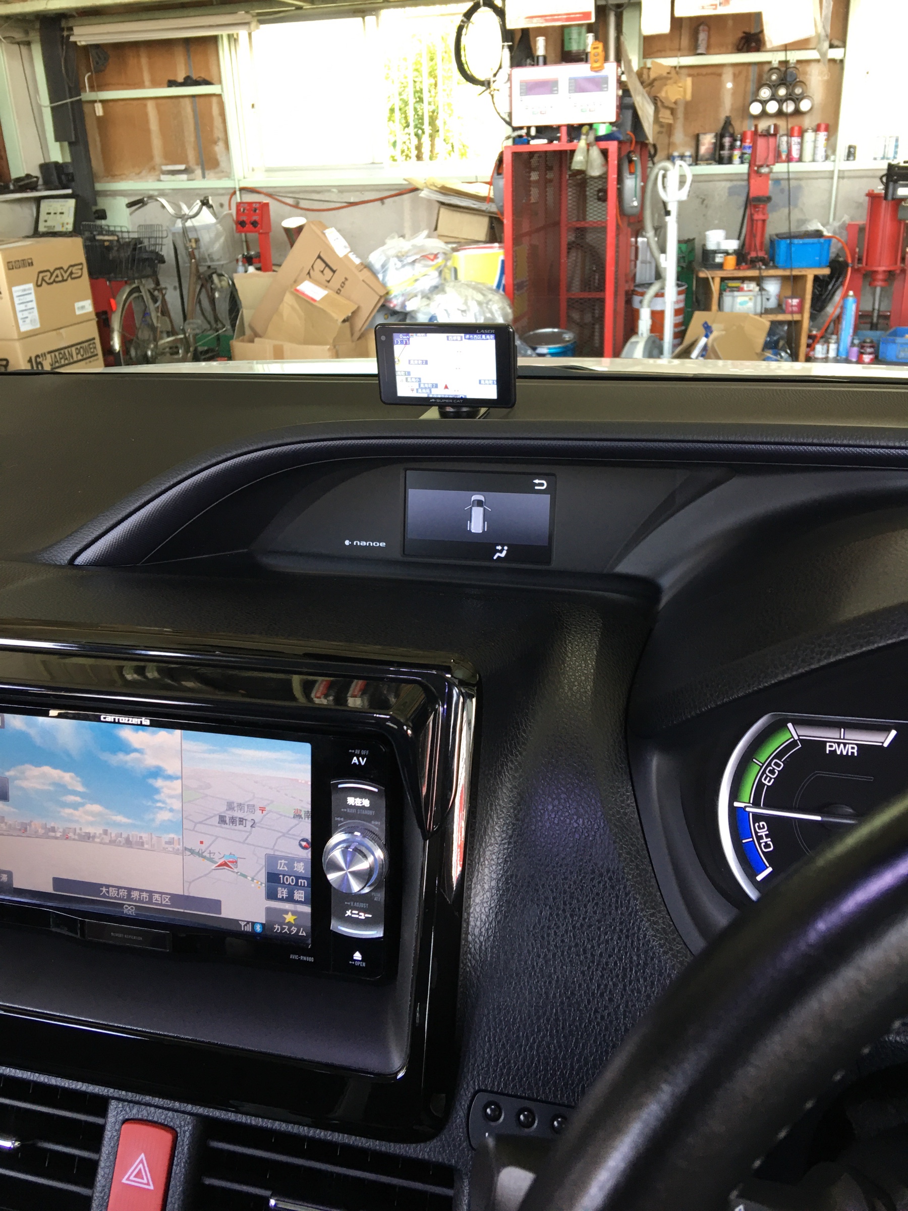 本日は最新レーザー式移動オービス対応のレーダーを取り付けさせていただきました。このタイプはレーザーの受信を良くする為にできるだけ、車のセンター付近に設置するのが望ましいとの事で、こちらに取り付けさせていただきました↓