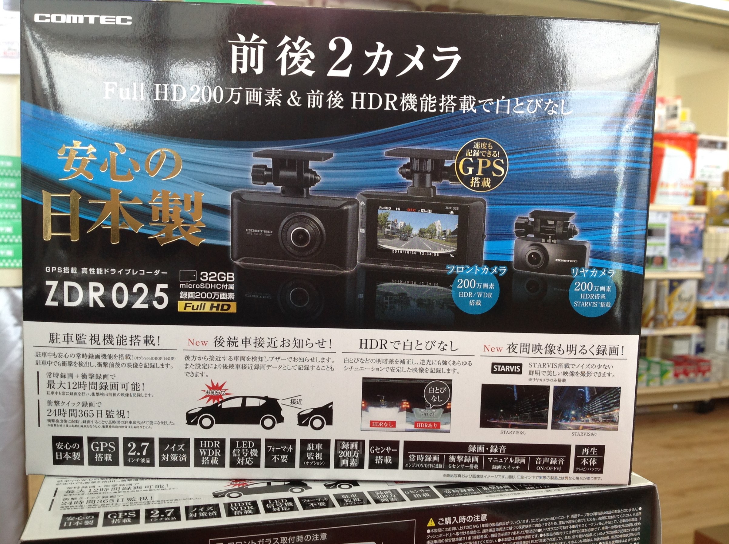 本日お電話でドライブレコーダーの在庫問い合わせを頂き、前後2カメラをお探しだったので当店いつでも在庫しておりますコムテック ZDR-025を取り付けさせて頂きました。