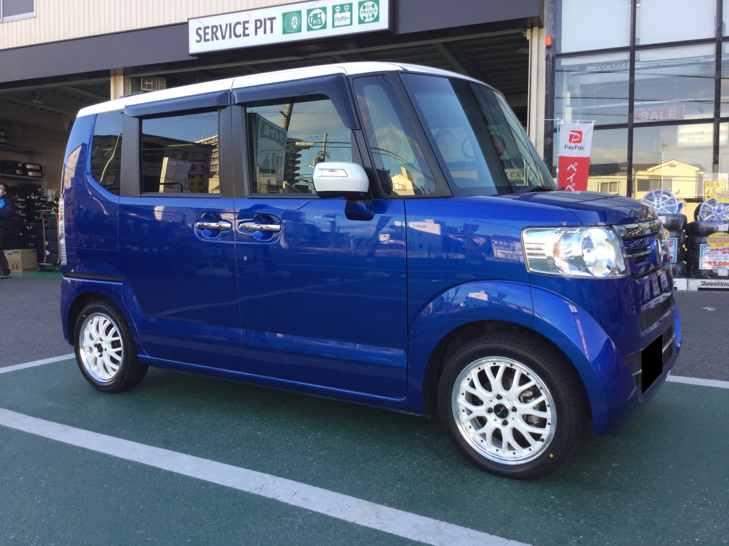 昨日のムーヴは16インチ、今回はN-BOXに15インチでお取付です。